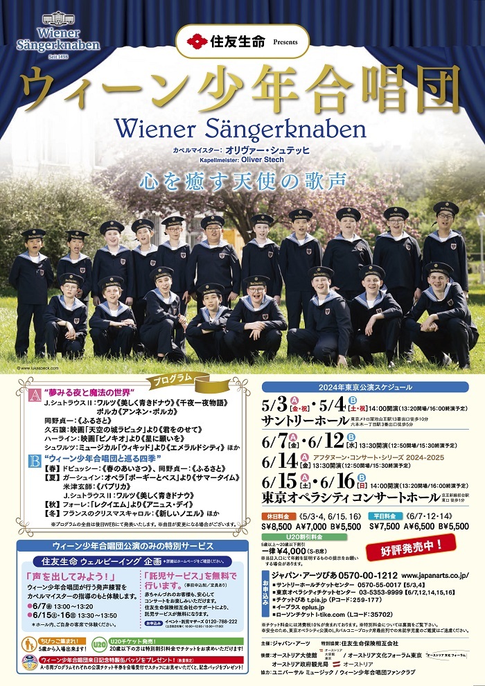 2024年4月27日(土)より6月16日(日)まで、ウィーン少年合唱団が日本全国でツアーを開催する。公演に先駆けて、来日公演で演奏するプログラム全曲を「ウィーン少年合唱団2024 特設サイト」にて発表された。
