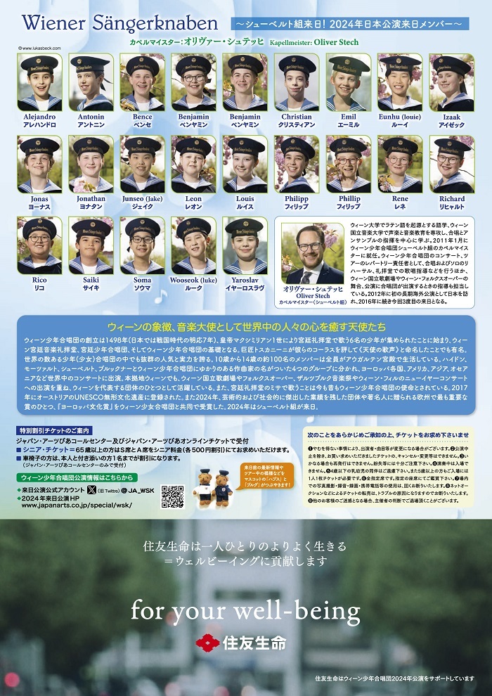 日本には今からおよそ70年前の1955年に初来日。以来長きにわたり、あらゆる世代の多くのファンに愛されてきた。そんなウィーン少年合唱団が今年2024年も日本全国でツアーを開催する。
