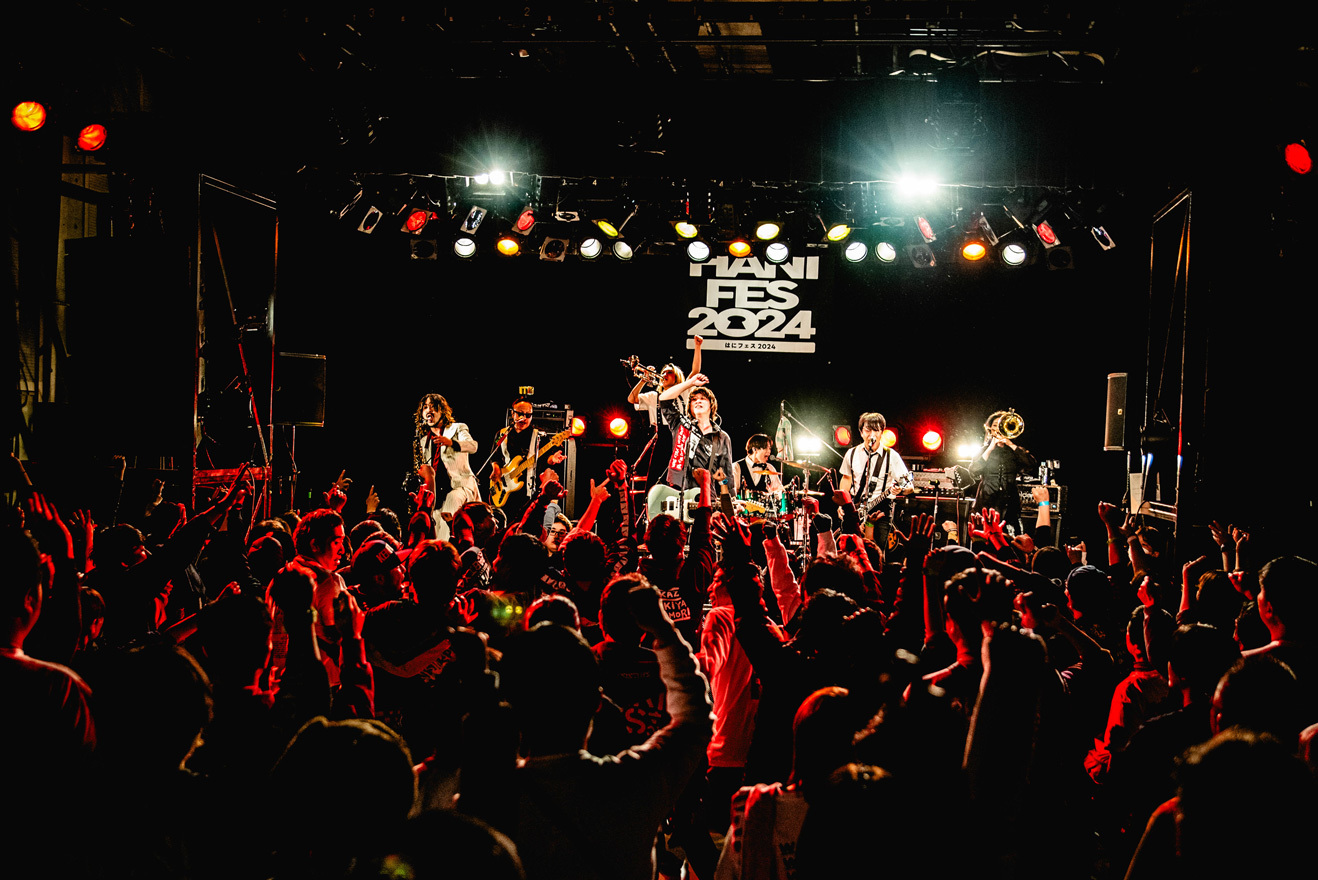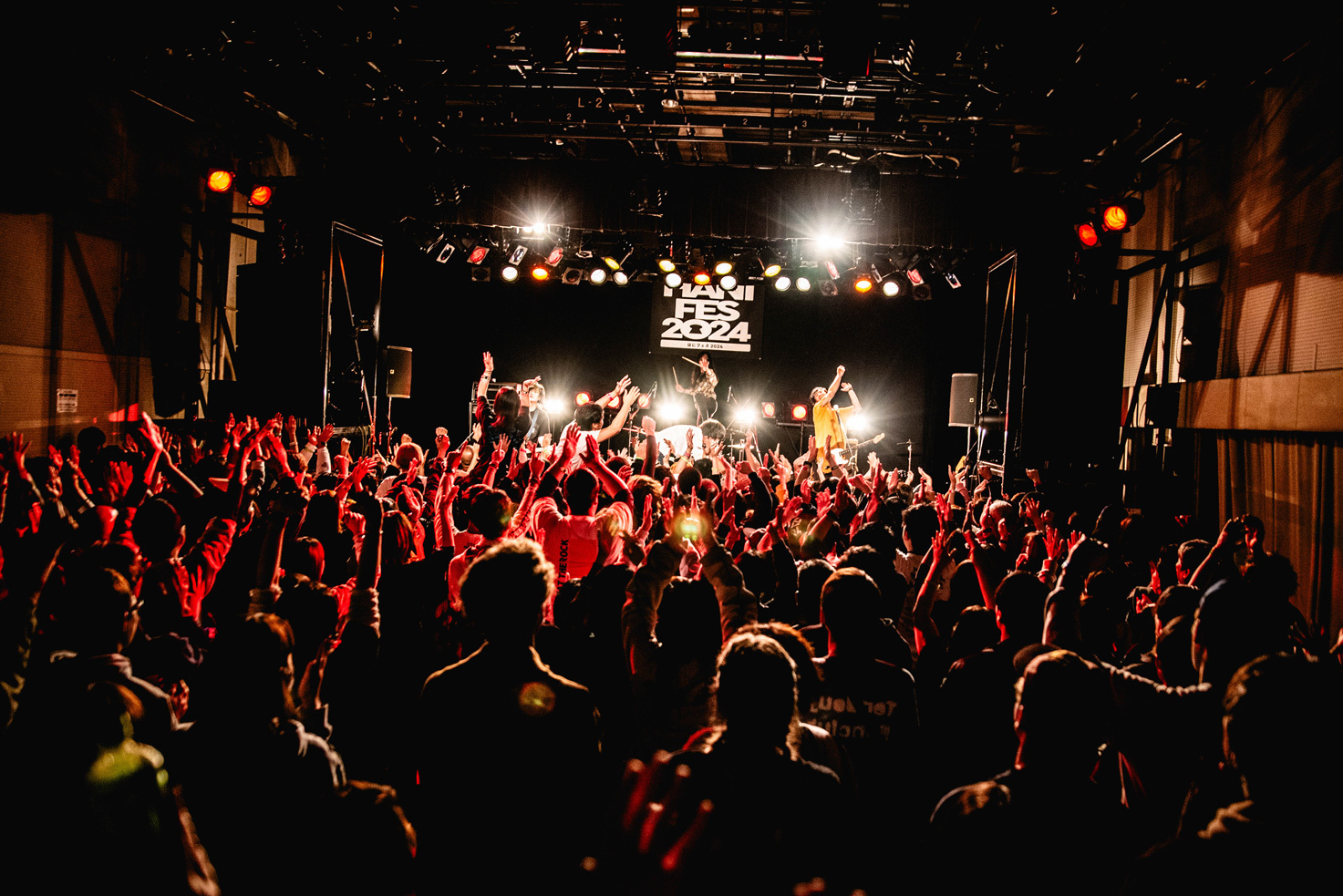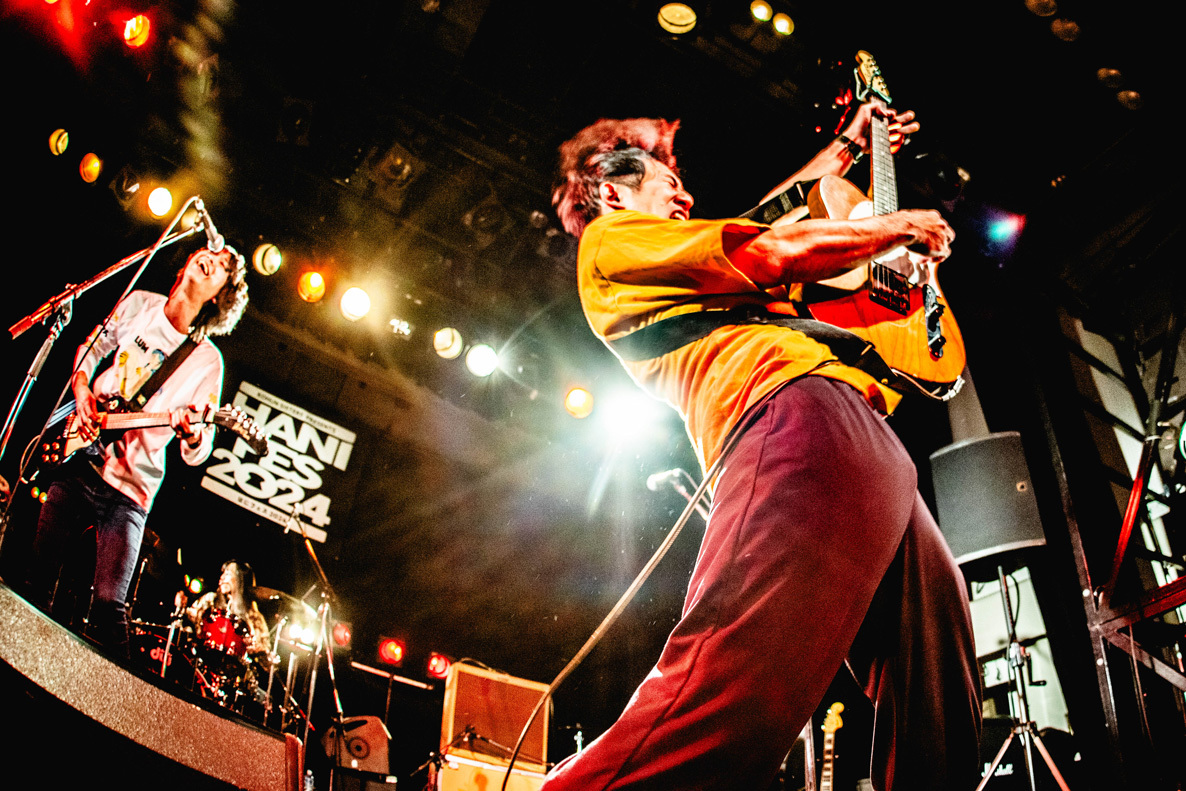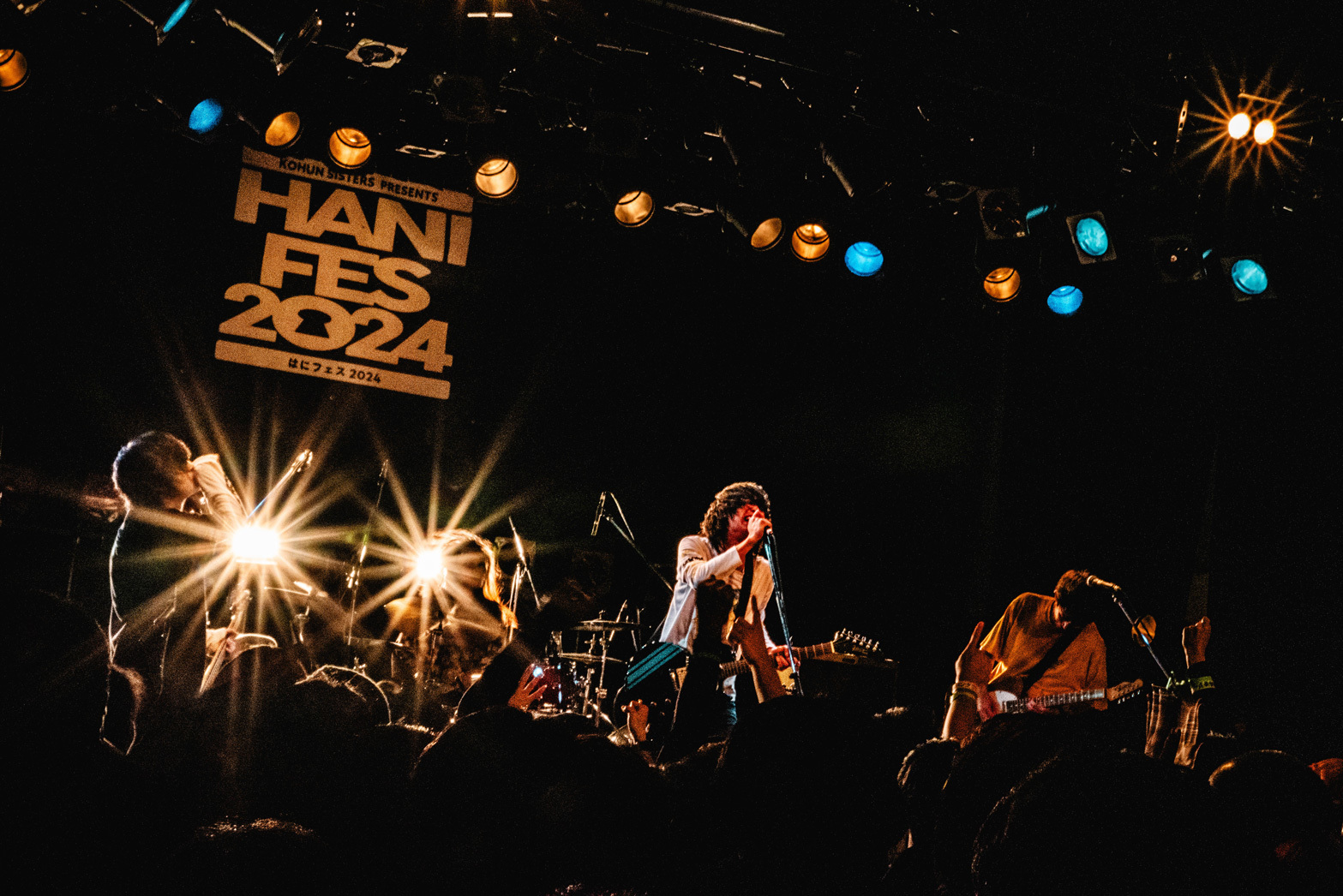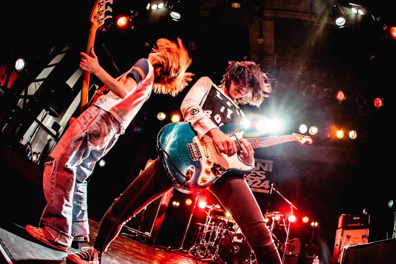 二番手はビレッジマンズストア。こちらもライブハウスで歴戦を重ねてきているだけあって、リハの段取りが早い。リハからライブ同様の音合わせをして、すでに観客を盛り上げている。2日間、2024年初ライブというバンドが多かったし、なので、より気合いが入っていたが、そんな中でもボーカルの水野による「いつでも(観客が)帰れるように、一番最高得点を二番手ですが出していきたい!」という言葉は良かった。
