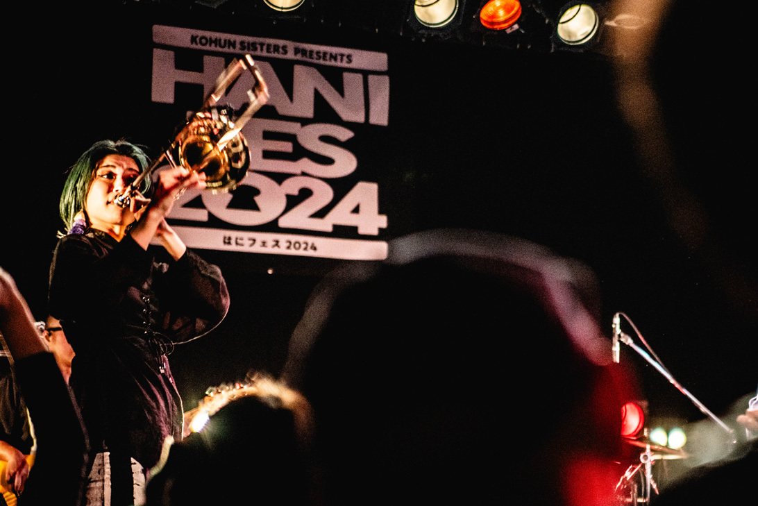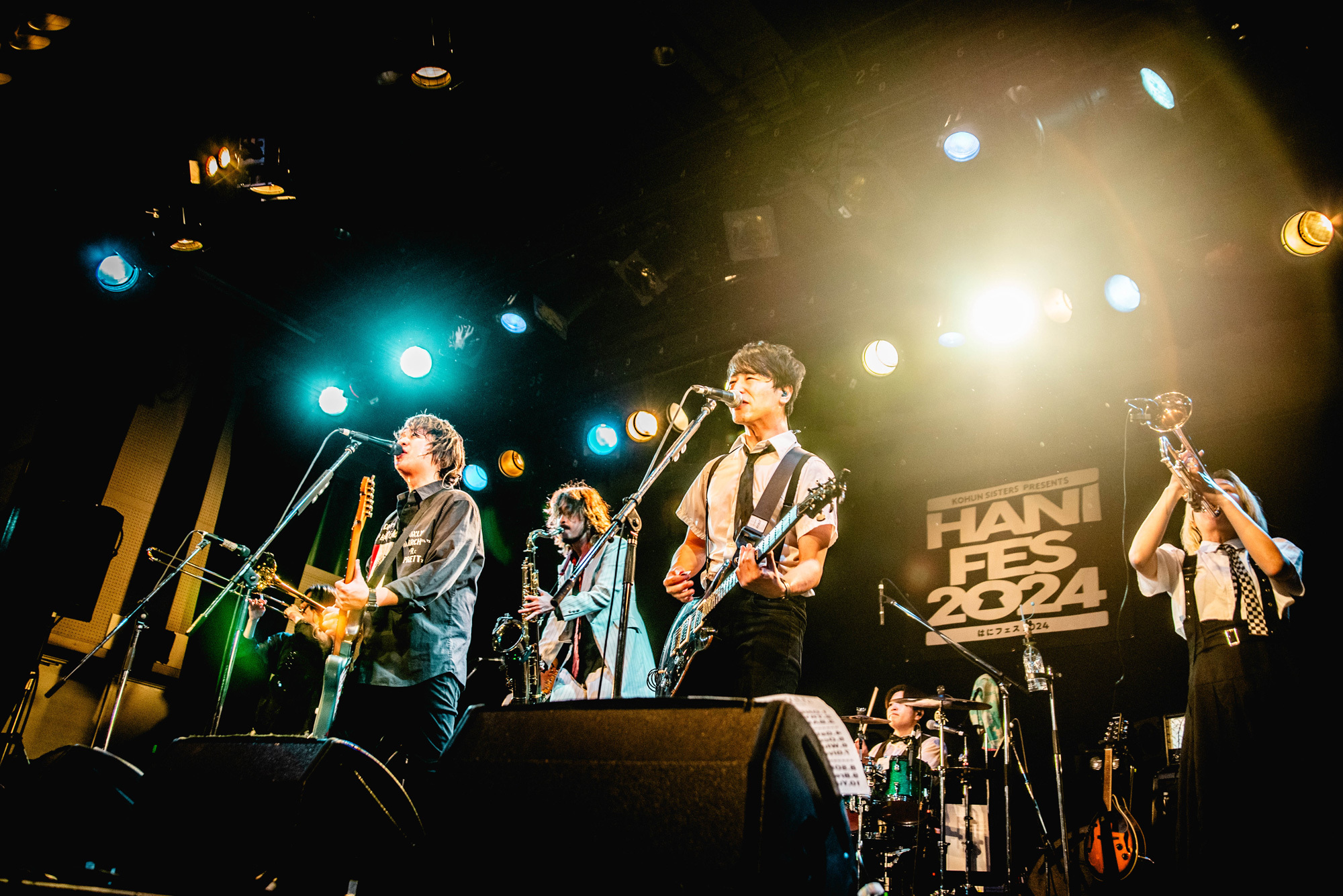 丈弥は45歳だが、「45歳やけど、むちゃくちゃ青春の曲が出来た!」と新曲をおろす。自分たちのファン以外の観客が来るフェスやイベントでは、いわゆる代表曲や有名曲をやるのが一番わかりやすい中、そこで新曲をおろす姿勢にはライブバンドの気概を感じるしかない。今が一番最高ということをライブで更新し続けるライブバンドならではのセットリスト。日本武道館に観客たちを必ず連れて行くと、それも後輩ライブバンドの晴れの舞台で、先輩ライブバンドとして強き背中を見せる男道な生き方にも痺れた。いよいよ本日トリの古墳シスターズへバトンが渡ろうとしていることを感じ始める。
