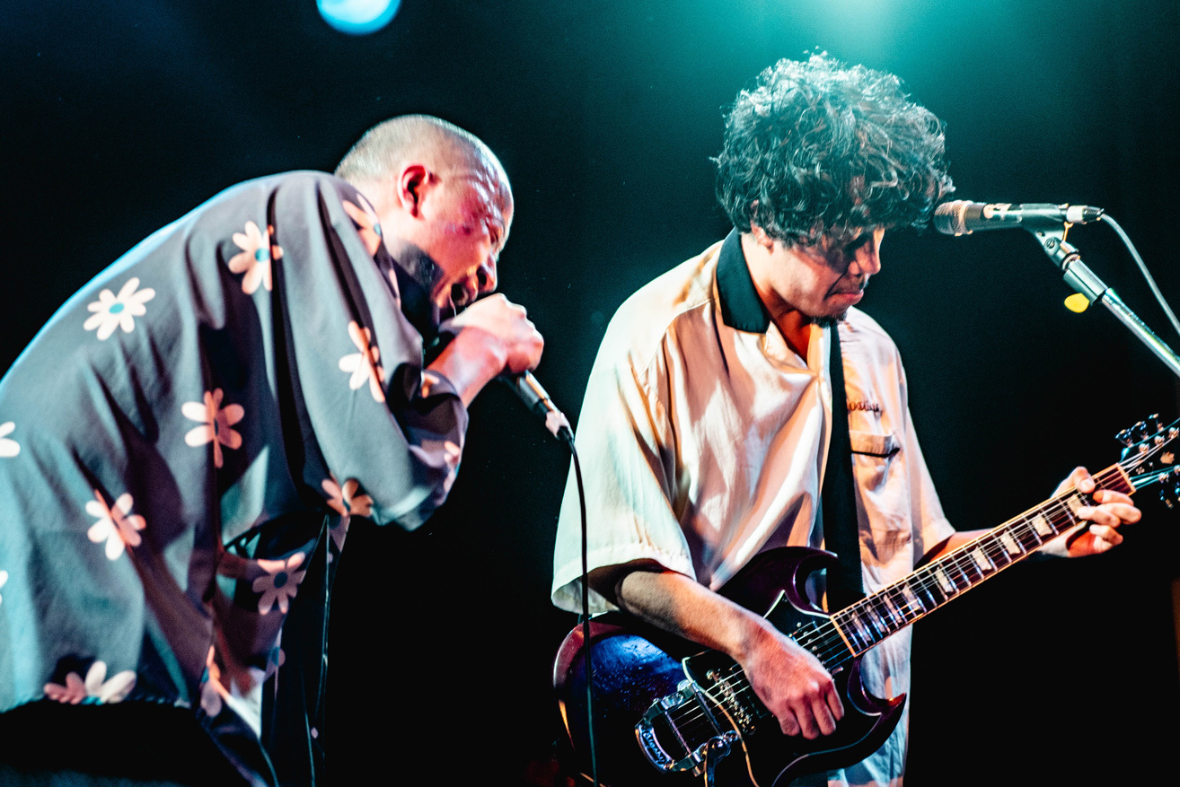TENDOUJIは謙遜してパワーを持ってないと言ったが、最初にラインナップを観た時に、古墳シスターズの普段から付き合いがあるライブバンドでは無く、どのような関係性があるのだろうかという新鮮さも感じたため、TENDOUJIの存在には充分すぎるほどのパワーを感じた。リズミカルに鳴らされるロックンロールは一瞬で場に華やぎを与えてくれたし、一番驚いたのは持ち時間30分を7分巻いて終えたこと。東京から遠路はるばる来た場所であるのに、持ち時間にこだわりすぎず、ただただシンプルに自分らのロックンロールで盛り上げることに重点を置いていたのは、潔すぎるし清々しすぎるし、とてもクールで粋だった。