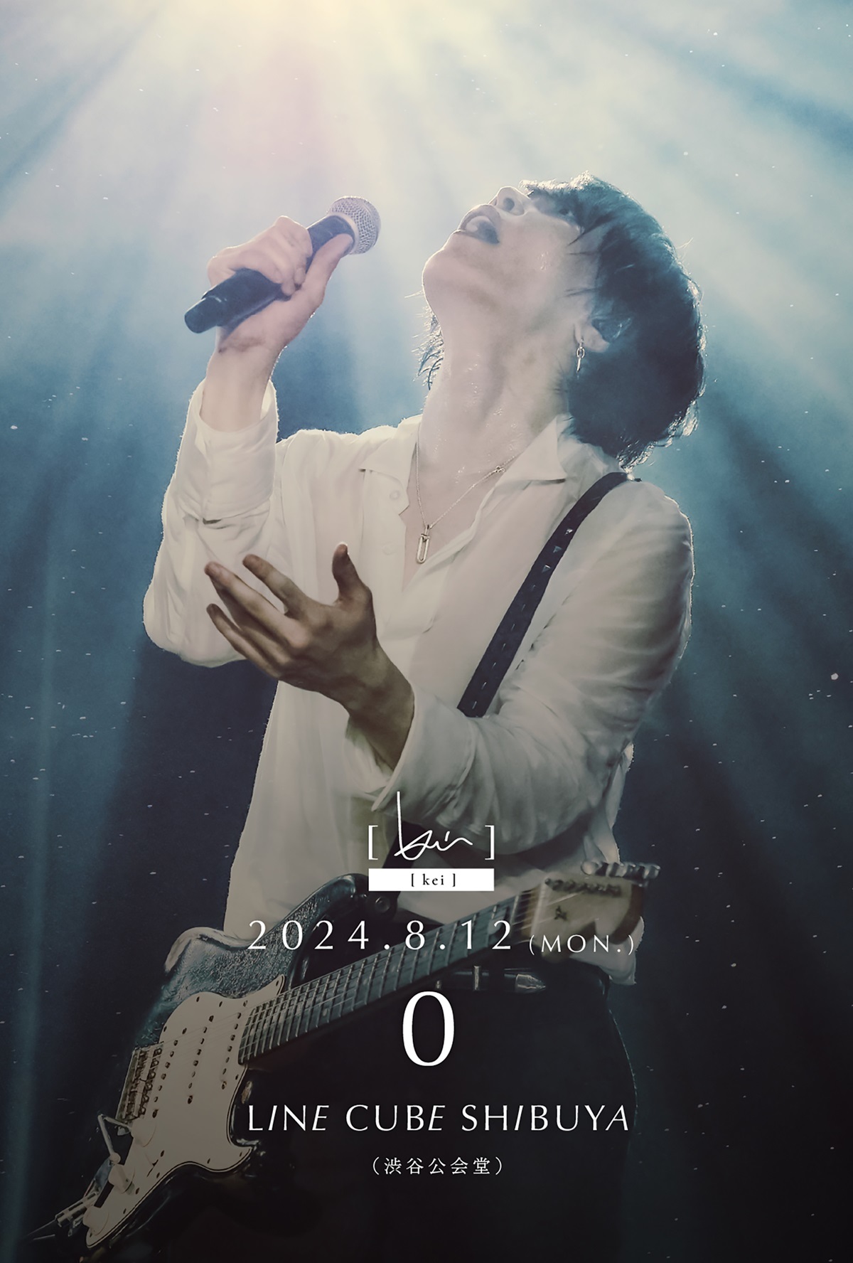 こうしてマンスリーライブ&リリースを重ねていき、自身の誕生日である8月12日、LINE CUBE SHIBUYAのステージに立ち『0』公演を行なう[ kei ]。根拠のない自信だけを頼りに、中学を辞め、バンドの世界に飛び込んだ彼は、kannivalism、BAROQUEという2つのバンドで音楽シーンを席巻。どちらのバンドもキチンとピリオドが打てないまま、活動はストップしてしまったが、バンドのギタリストとしてステージで輝きたいという夢は、ここまでの音楽人生で叶った。だが、その先に思いもよらなかった人生が待ち構えていることを教えてくれたのは、応援してきてくれたファンの存在だった。ファンに導かれるように新しい扉を開けてステージに向かい、センターに立ってギターを弾きながら歌い出した圭は、この新しいステージを生き抜くという決意を込めてアーティスト表記を圭から[ kei ]へと変えた。扉を開けたその想いを「MIRACLE」という楽曲で表現したあと、事務所を辞めて独立もした。こうして独立したいまこそ、中学を辞めたあのときと同じような覚悟を持ってリスクを恐れず、無謀な挑戦に挑まなければ、今までと自分は何も変わらない。MIRACLEを引き寄せてくれたファンのためにも、自分の音楽人生すべてを賭ける覚悟をもって、[ kei ]は8月12日、LINE CUBE SHIBUYA『0』公演に挑戦する。