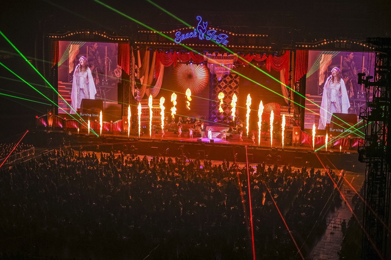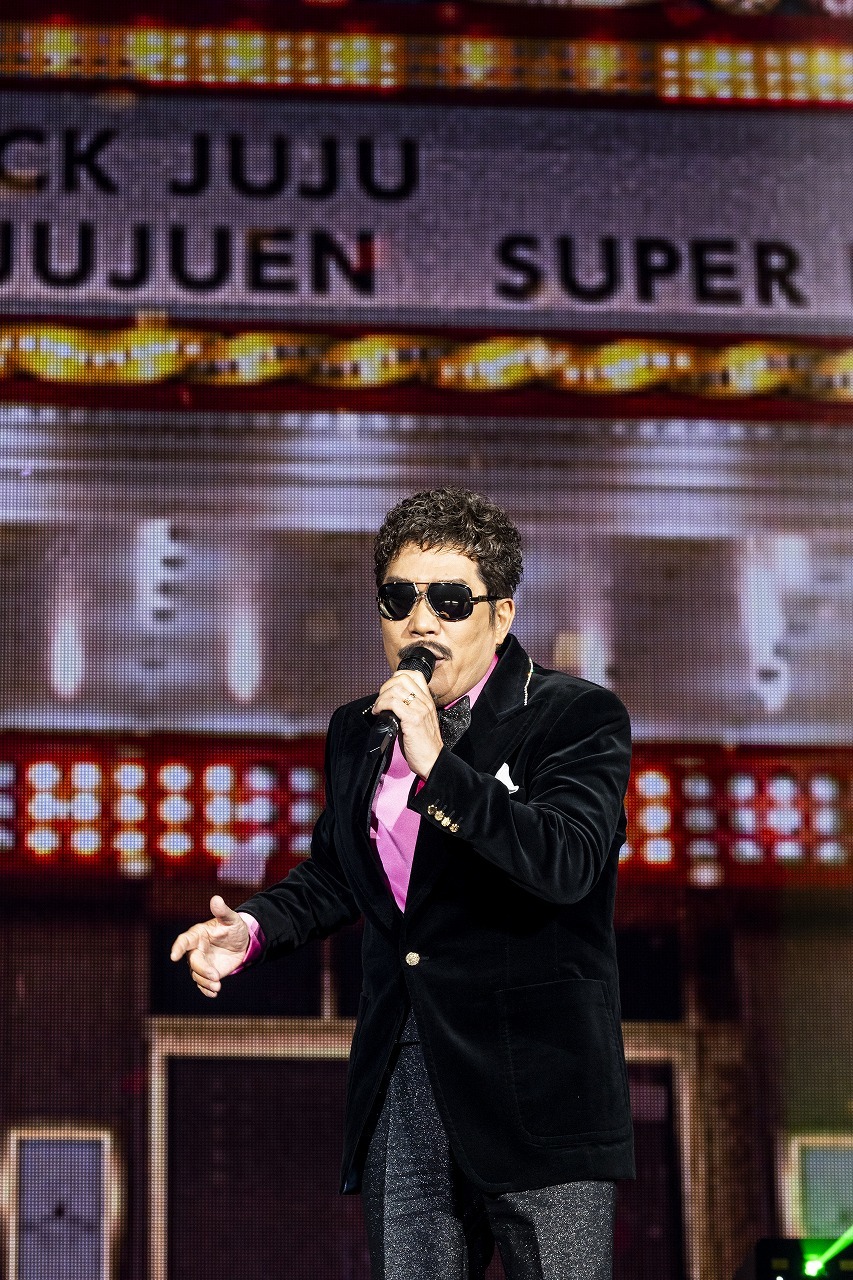 ラストを飾る「喝采」のリズムに合わせ、ドームいっぱいのLEDライトがゆっくり揺れる。銀の紙吹雪が大量に舞い踊る。ステージで歌い続ける人生と覚悟を余すところなく描いた歌詞がママの、いやJUJUの心情にぴたりと重なる。あたたかく力強いバンドサウンドがそれを支える。この日のスナックJUJUを誰よりも楽しんだのはJUJU、いやママだろう。静かにお辞儀をしてステージを去る姿に拍手が鳴りやまない。