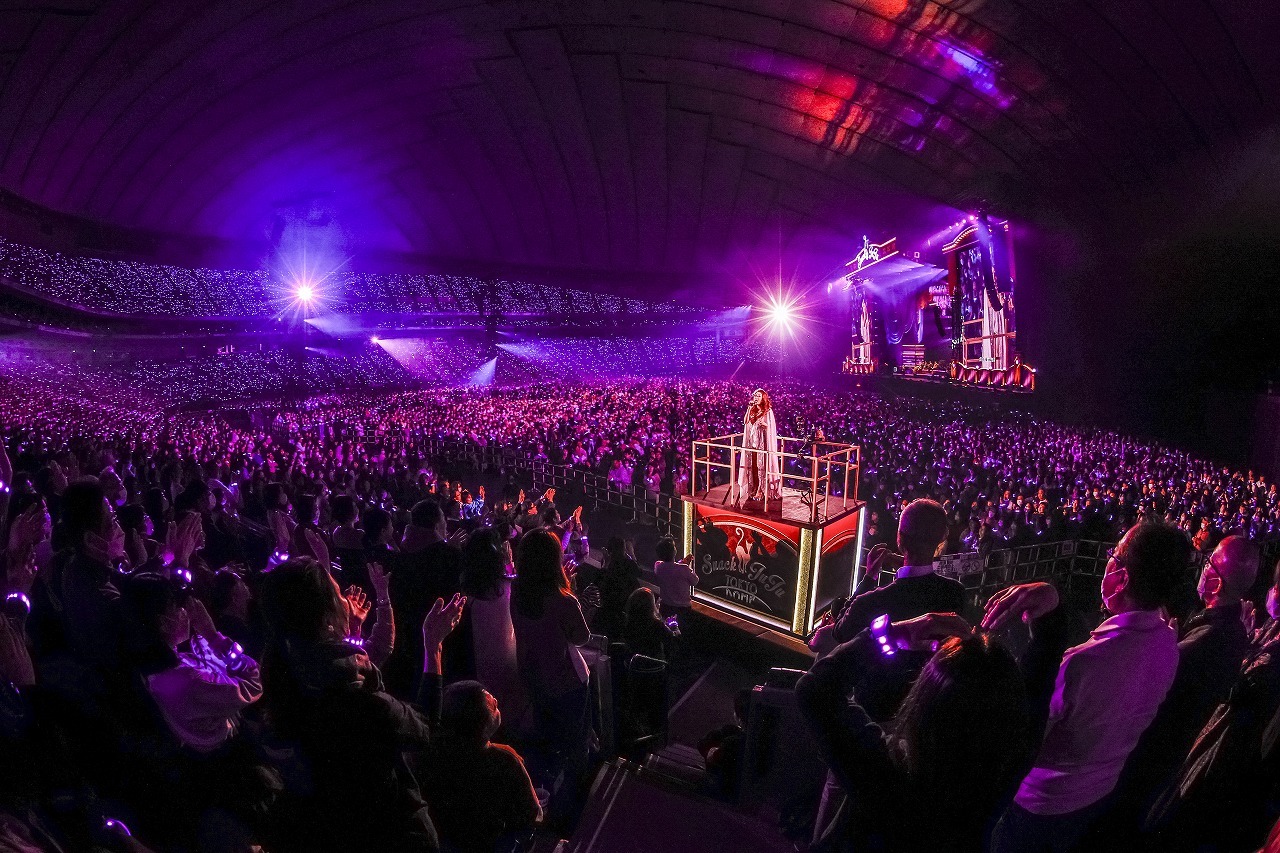 この日二人目のスーパーゲスト、NOKKOがステージに飛び出して「フレンズ」を歌い出した瞬間、空気ががらりと変わった。80年代、ロックバンドが台頭した時代、新しく若いカルチャーの象徴。変わらないエナジーとパワーで「RASPBERRY DREAM」を歌い、珠玉のバラード「Maybe Tomorrow」を歌う。ママが「REBECCAの曲の強い女の子に憧れました」と告白する。80年代は平和だったねと微笑み合う。LEDライトが広いドームを一面の星の海に変える。