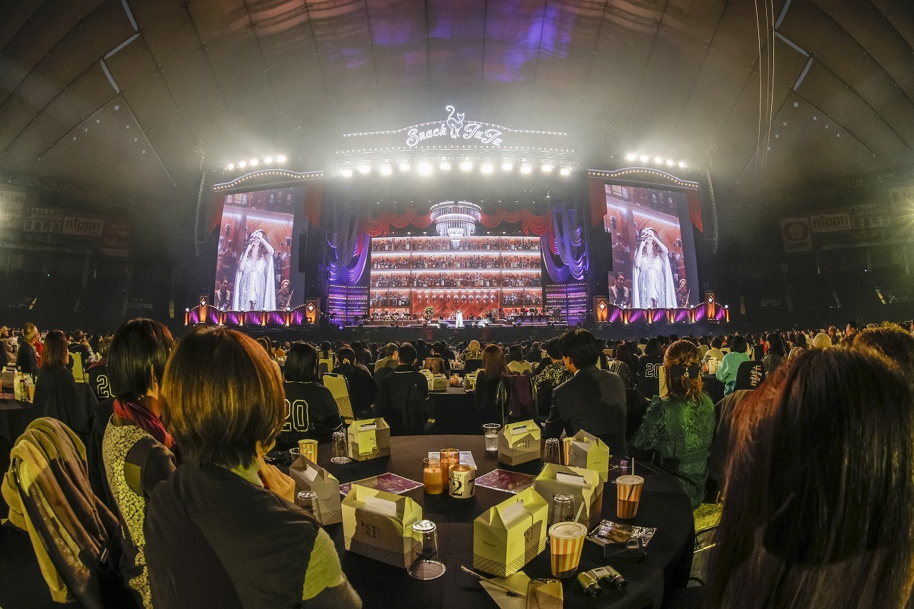 素人の方がいきなり東京ドームのステージで歌うのは……と、親心めいた心配はまったくの杞憂だった。先ほど選ばれたばかり、chiakiさんがママのサポートを得て堂々と歌い切った「ラヴ・イズ・オーヴァー」は素晴らしかった。スナックのお客さんが誰もがこんなに歌えるのなら、昭和の歌謡曲は決して古びないだろう。さらにもう一つの恒例企画「今月のユーミン」では、荘厳なオルガンと白く輝くスモークに埋もれて「翳りゆく部屋」を。歌い込んだ年季の違いがにじみ出る、神々しさすら感じる圧巻の歌唱。