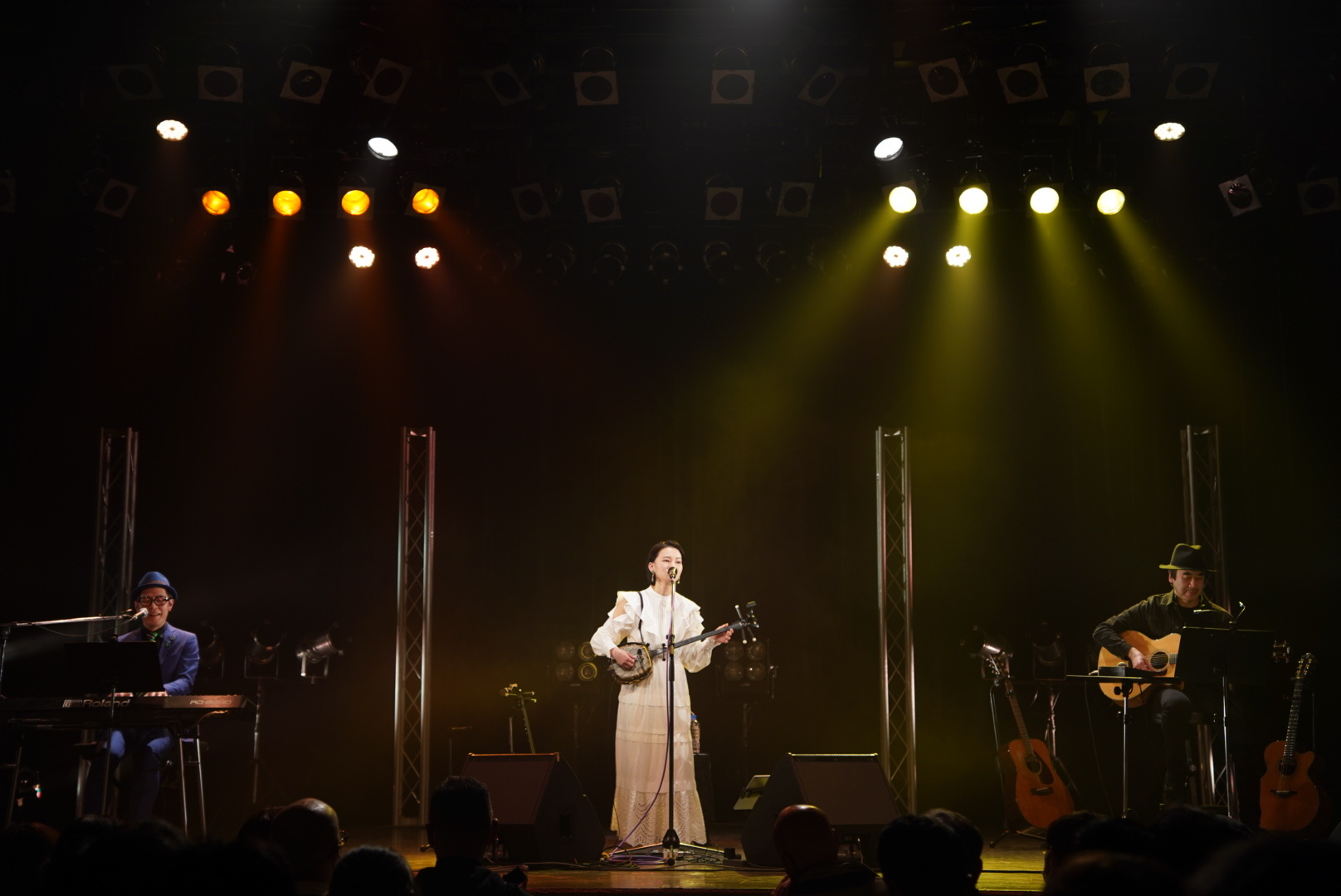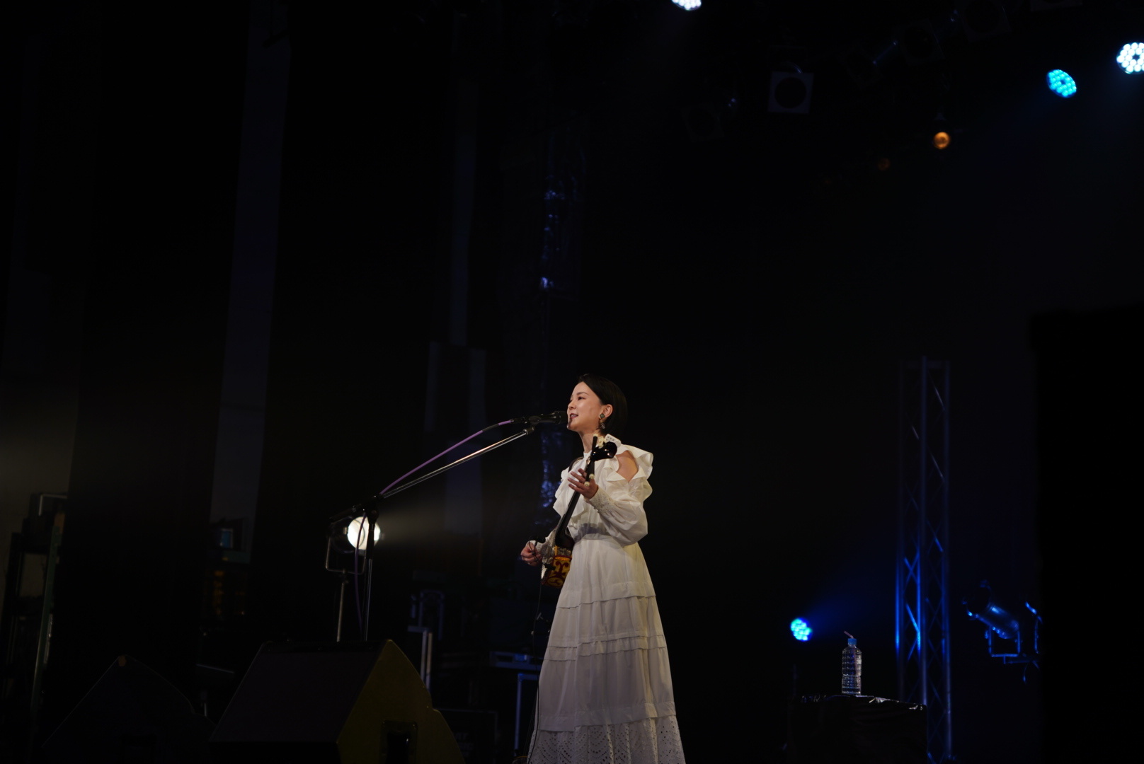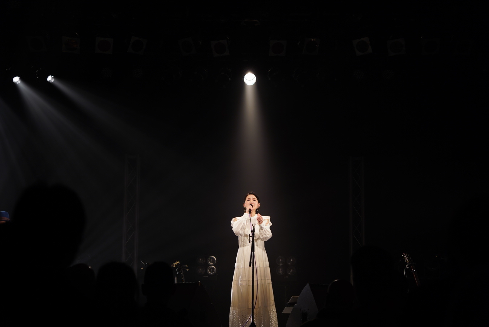 「今を生きる私たちが出来ることは、大切な人とのかけがえのない時間を一日一日をしっかり生きていくことだと思います」と語り、もう二度と会うことのできない大切な人への思いを綴った「光はココニ」を披露。まるで泣いているかのように歌う、切なくも儚い彼女の歌声は観客すべてを魅了していた。そして、沖縄の方言で“ゆっくり・ひと休み”という意味のある「ゆくい」では、マイクを外し、生歌で届ける場面に多くの人が涙を流しているように見えた。