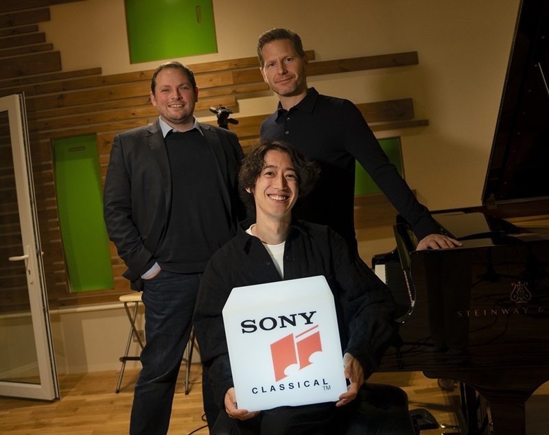 左から、アレクサンダー・ブール(ソニークラシカル シニア・バイス・プレジデント)、角野隼斗、ペア・ハウバー(ソニークラシカルプレジデント)(C)Becca Wheeler
