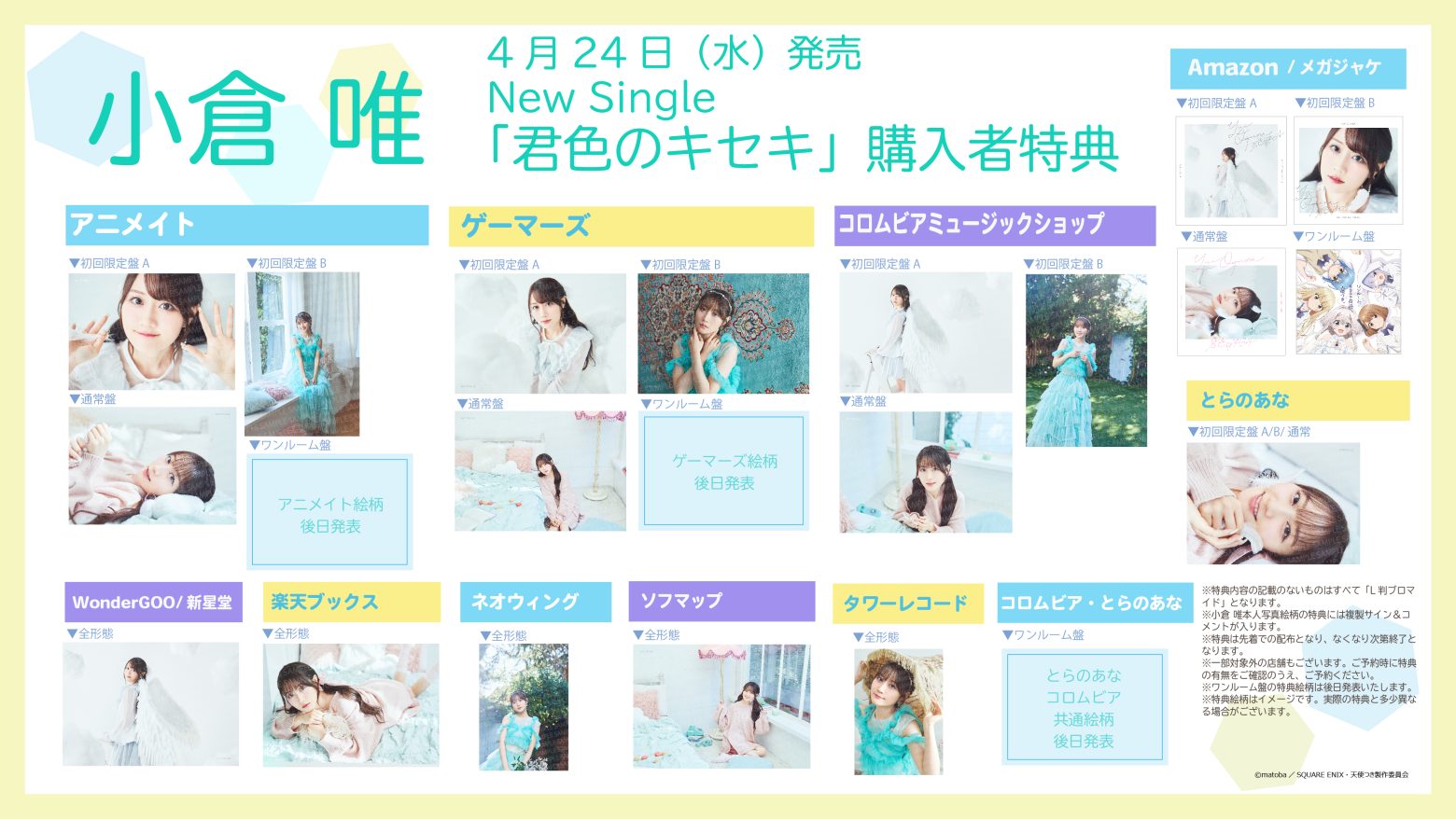 声優・アーティストとして活動する小倉 唯が、4月24日にリリースするシングル「君色のキセキ」の収録内容とジャケット写真を公開した。