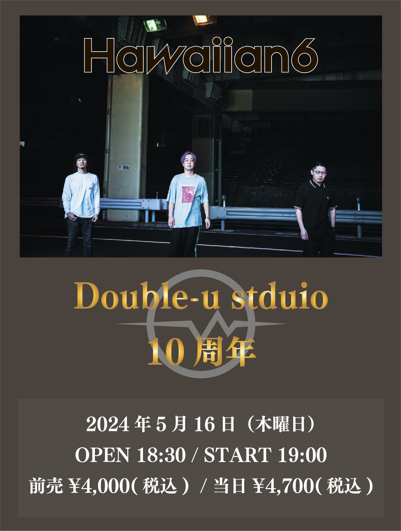 2023年5月16日(木)に、愛媛・松山のライブハウス「Double u studio」の10周年記念イベントでHawaiian6の出演が決定した。