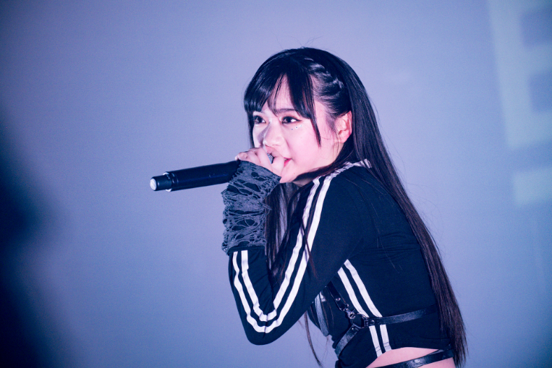 続いて、彼女たちの始まりの合図でもあるダンスナンバー「Girls In「」でAi役の谷真理佳も登場し、1stシングル曲「NDA」を披露。曲に合わせて手を振り上げる観客に乗せられるように、Bellemuleも序盤からフルスロットルのパフォーマンスで応える。さらに、2ndシングル曲「Who am I」でも、自信溢れるパワフルなダンスで会場の熱量を引き上げた。