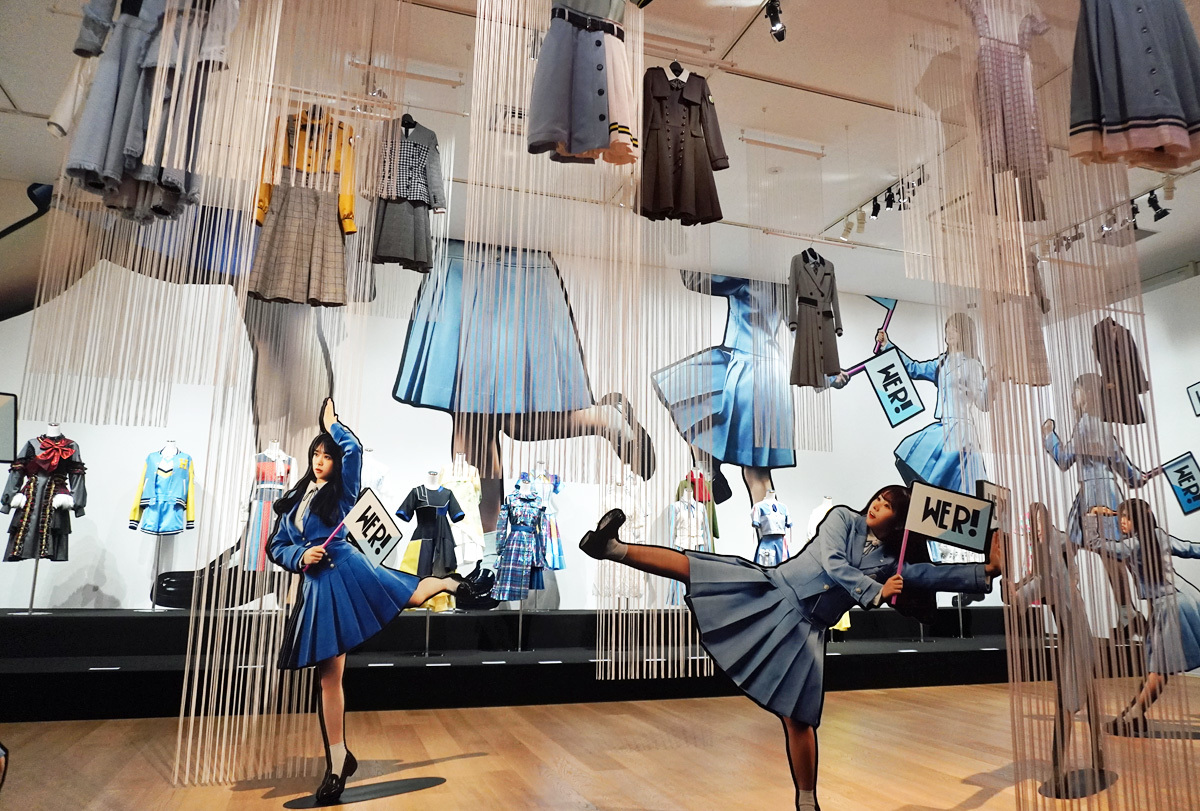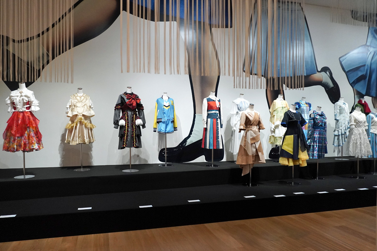 特に第6章「日向坂46」には、ライブやMV、イベントや番組などの衣装がずらりと並ぶ。衣装はステージ上のマネキンが着用しているほか、天井からも吊り下げられており、圧巻だ。カジュアルな服やフリルを多用した可愛らしいワンピース、シンプルで清楚な制服やゴージャスなドレスなど、雰囲気はそれぞれ異なるがどれも趣向を凝らしてあり、メンバーたちの魅力を存分に引き出している。いずれも実際に着用されたものだという。