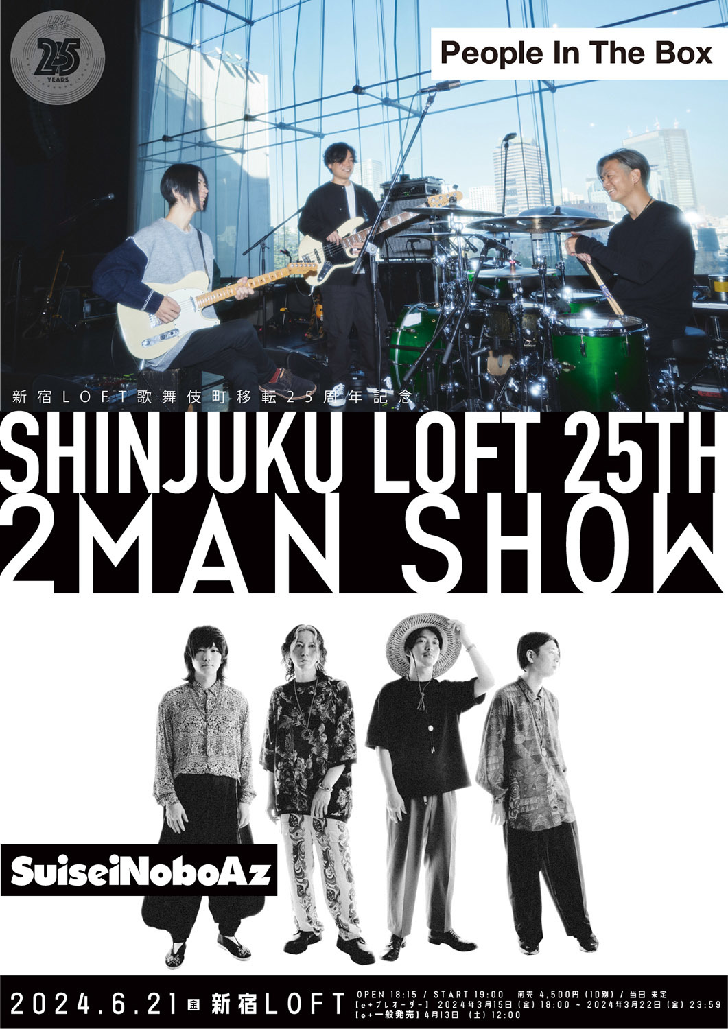 6月21日(金)にPeople In The Box×SuiseiNoboAzの2マンライブが開催。チケットはイープラスにてプレオーダーが3月15日(金)18:00から開始される。受付は3月22日 (金) 23時59分まで。