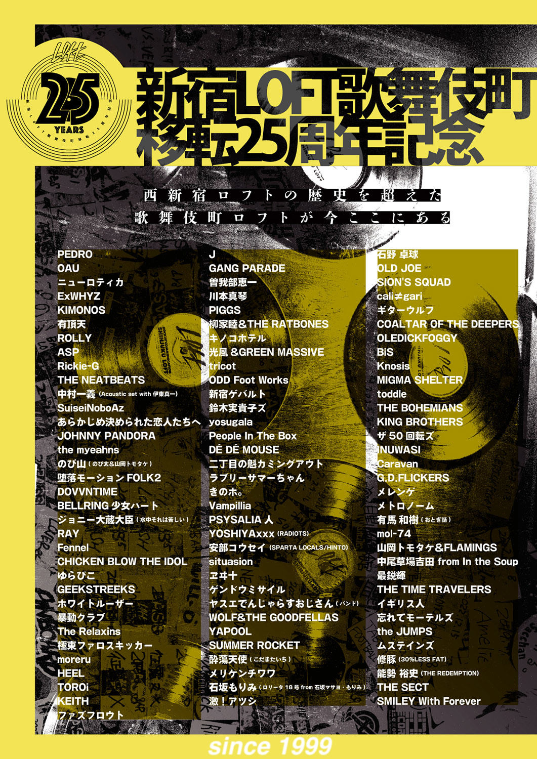 豪華なアーティストが出演する「新宿LOFT歌舞伎町移転25周年記念」にぜひ足を運びたい。