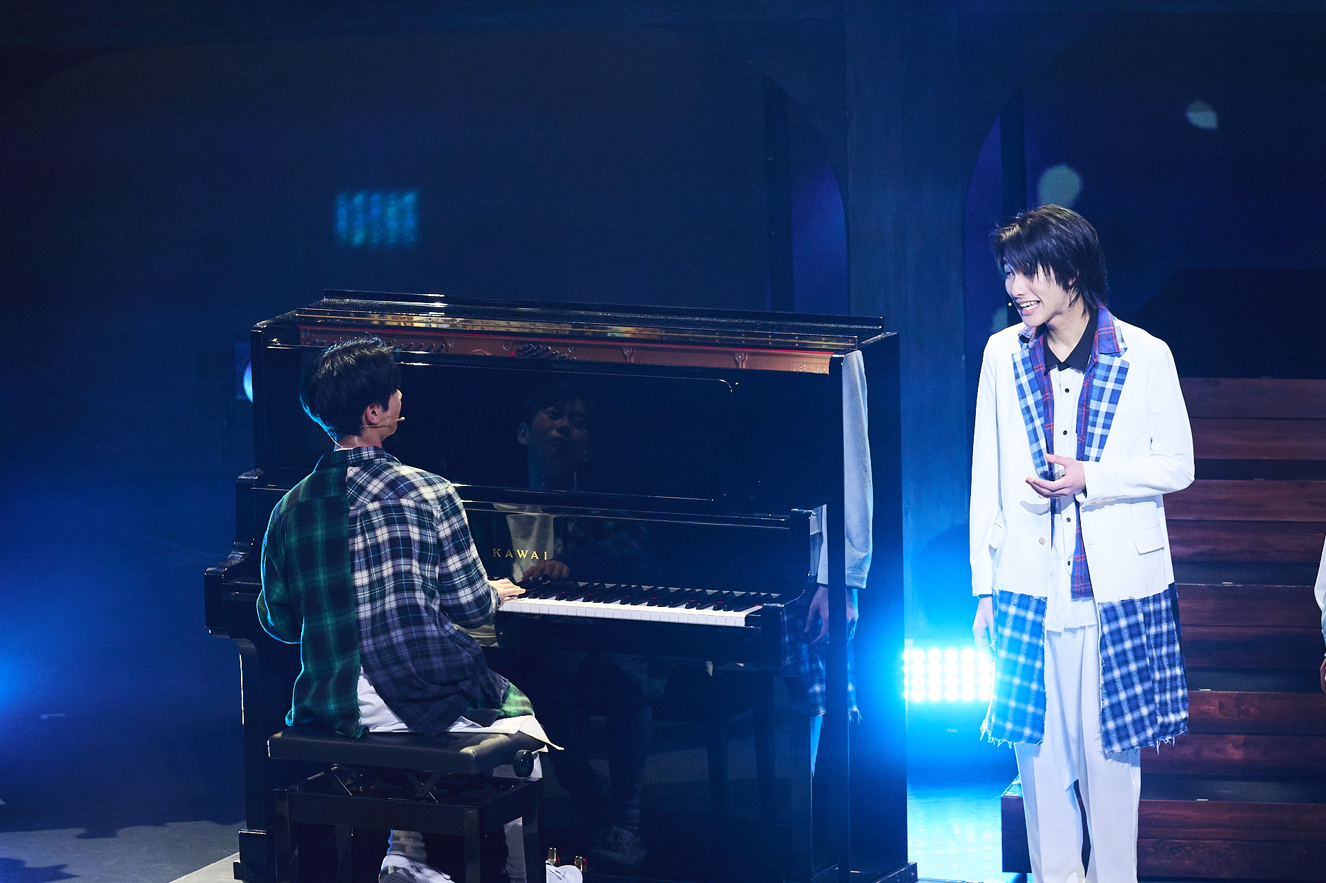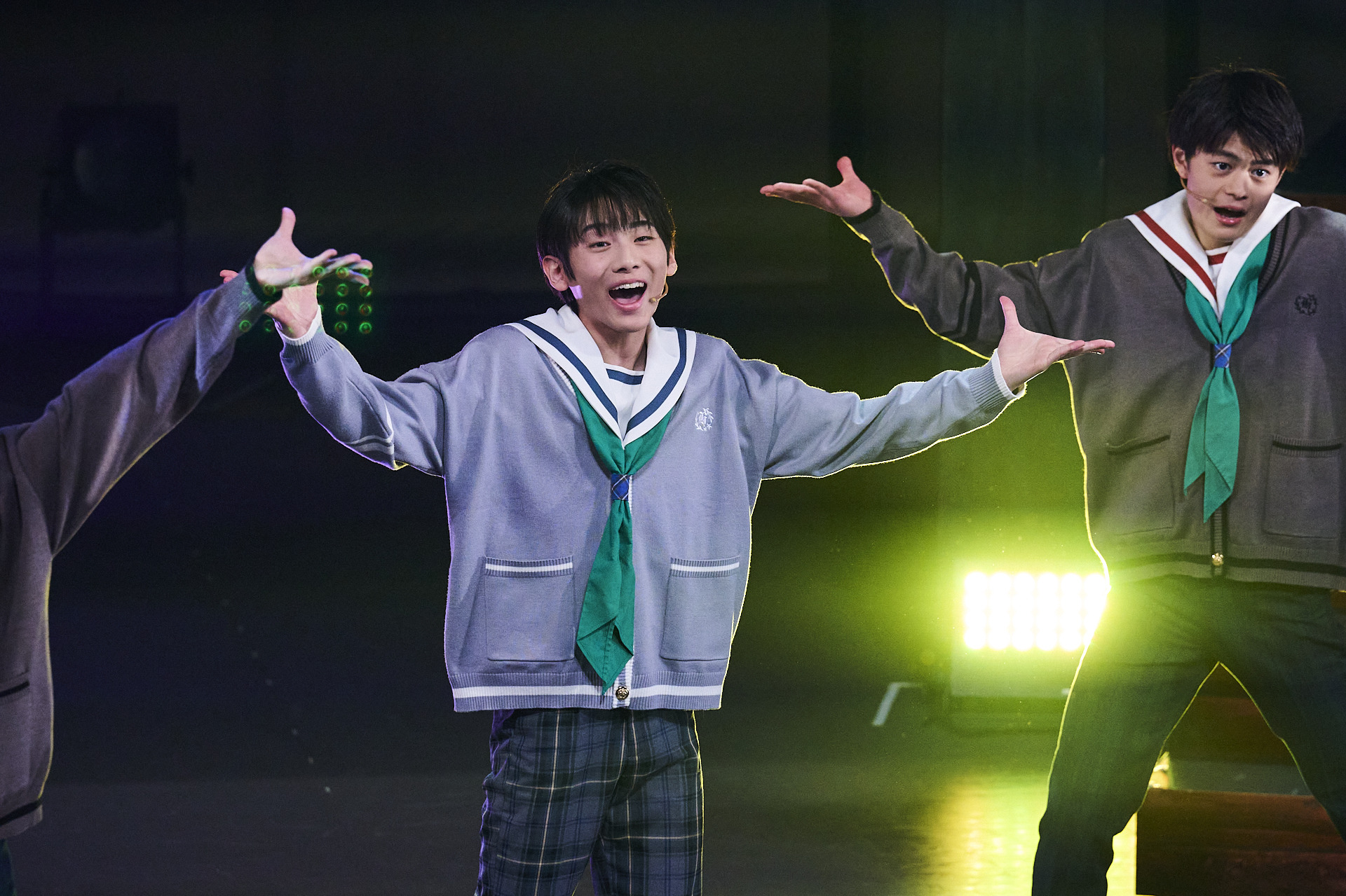 神戸の街を模したセットに波の音が流れる。やがて暗転し、ステージのセンターに立つ塚本晴人(演:塚木芭琉)にピンスポが当たる。役者になる夢を叶えるためにグループを卒業することを、力強い声と眼差しで語る塚本。その様子からは、夢に対する思いの強さと覚悟が痛いほど伝わってきた。