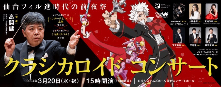 2016年10月および2017年10月から各半年間NHK Eテレにて放送されたオリジナルアニメーション『クラシカロイド』。「ベートーヴェン、モーツァルト、バッハたち名作曲家が現代に存在したら」をテーマに様々な要素を組み合わせ制作された同アニメは、放送から7年経った今も根強い人気を誇り、2023年12月6日(水)には『クラシカロイド 原曲全集』がリリース、さらに2024年3月20日(水・祝)には日立システムズホール仙台にて、同アニメとフレンドシップコラボレーションをすることとなった仙台フィルによる『クラシカロイド』コンサートが控えている。