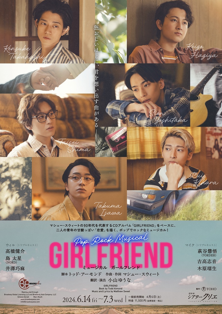 2024年6月14日(金)~7月3日(水)に東京・シアタークリエにて上演される、ミュージカル『GIRLFRIEND』のキャスト6名のビジュアルと、コメントが公開された。