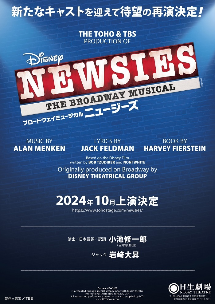 2021年に日本初演され、第29回「読売演劇大賞作品賞」にも輝いた、ブロードウェイミュージカル『ニュージーズ』の再演が、2024年10月、東京・日生劇場(兵庫・福岡公演あり)にて、決定した。