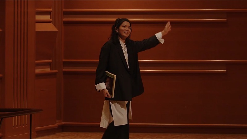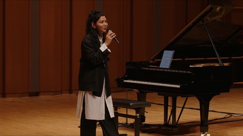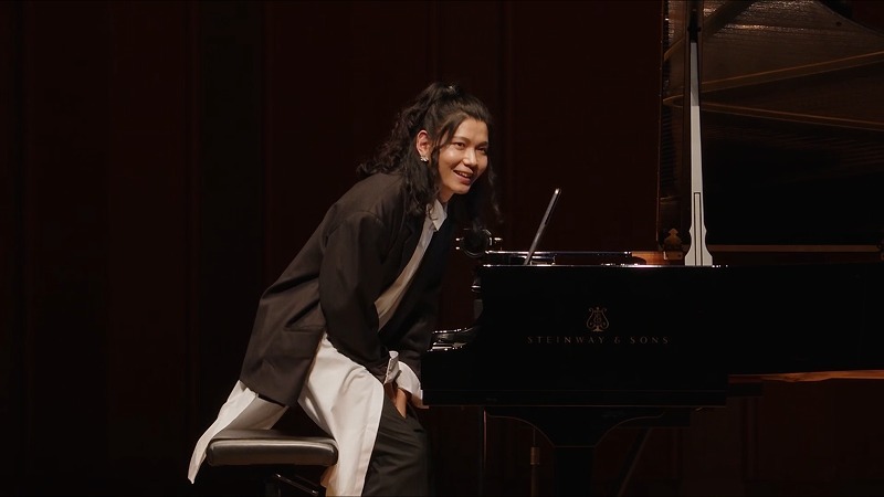 MCでは、YouTube配信で見せるままの、自然体のBudoの姿に親しみが沸くと同時に、その言葉にも共感させられる。どの曲もひとつひとつ終わるたびに、音楽への愛と共感を滲ませながら、言葉を紡いでいく。そのことが大昔の音楽を聴いているという感覚を忘れさせ、いまこの場で作られた新しいポップ・ソングのようにクラシック音楽が活き活きと響いてくる。ベートーヴェンの「月光」やショパンの名曲やリストの「ラ・カンパネラ」といったピアノ音楽を、ラブソングを聴く気分で聴かせてくれるのだ。グッズへのこだわりやロゴのモンドリアン風デザインの説明も楽しい。あっという間に前半最後のシューベルト/リスト「魔王」を聴き終えていた。この曲は体格のいい彼の力強いプレイが活きる楽曲で、右手の八分音符の連打が、先を急ぐ馬車の姿をよく表現していた。
