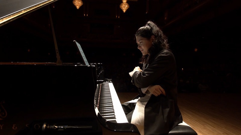 後半は、ショパンの中でももっともよく弾かれる楽曲「幻想即興曲」から始まった。曲が終わると「最高ですね」そんな風に場の空気を感じながら漏らす言葉や語り口が、ロックミュージシャンの空気すら感じさせてくれる。