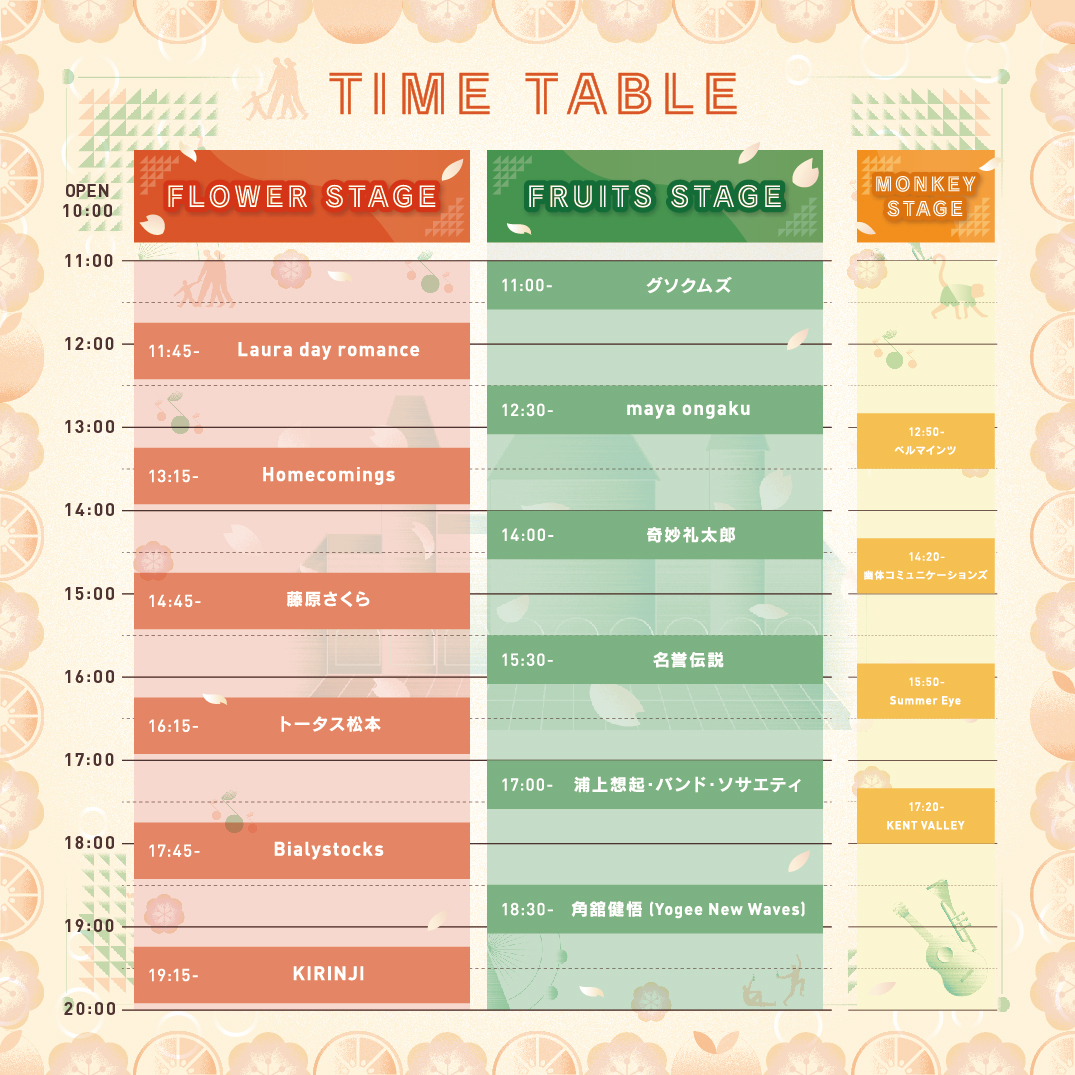2023年4月に初開催された同フェスティバル。北神戸の豊かな自然の中、美しい建物や庭園、そして神戸のお店を始めとした多数の出店を楽しみながら音楽をたっぷり堪能する空間が届けられた。今年のステージは、去年と同様「FLOWER STAGE」「FRUITS STAGE」の2つ加え、「MONKEY STAGE」が新たに決定。KENT VALLEY、Summer Eye、ベルマインツ、幽体コミュニケーションズの4組が出演することが発表された。