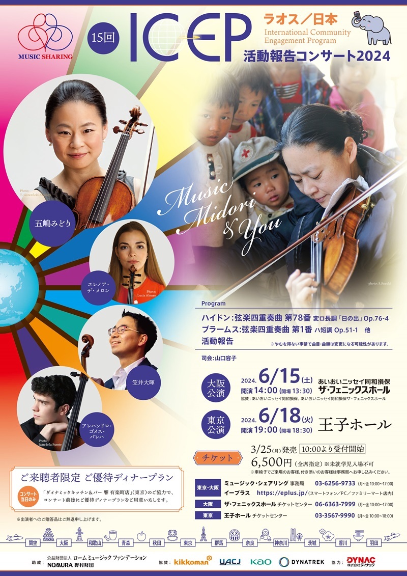 2024年6月15日(土)大阪、6月18日(火)東京にて、『第15回 ICEPラオス/日本活動報告コンサート2024』(主催:認定NPO 法人ミュージック・シェアリング)が開催される。