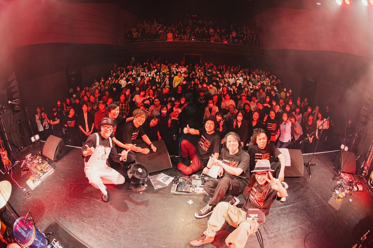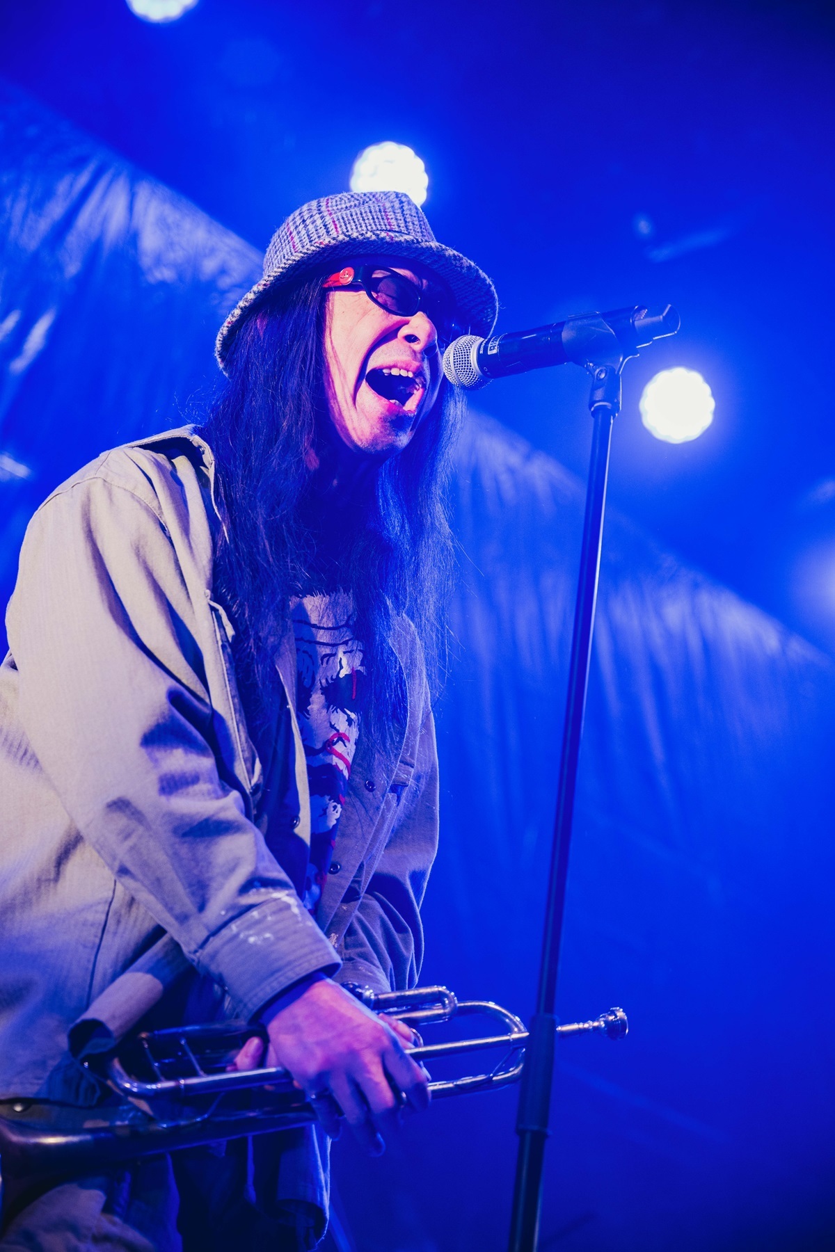 これだけ焚きつけておいて観客が許すわけがないので、もちろんアンコールである。そして驚いたのが、いやLÄ-PPISCHのMAGUMI(Vo&Tp)とtatsu(Ba)が登場すること自体に驚きは全くなかったのだが、問題はその役割分担だ。なんとメインボーカルは全て杉本恭一が担当し、MAGUMIはTp演奏をメインに歌はコーラスにまわっての「KARAKURI」「爆裂レインコート」「ガーリックマン」「イージンサン」を披露である。こんなの初めて見た。ほぼ40年見てきて初めて見た。まだまだやっていないことがあったのだということに大きな驚きと感動とヤラレタ感を覚えつつ。オーラスのダブルアンコールは「ラオラウ」そしてファーストアルバムから連綿と続く大人気曲にして暴虐の限りを尽くす沸騰曲「TACO」。正直に申しましょう、60歳のライブじゃないぜ。
