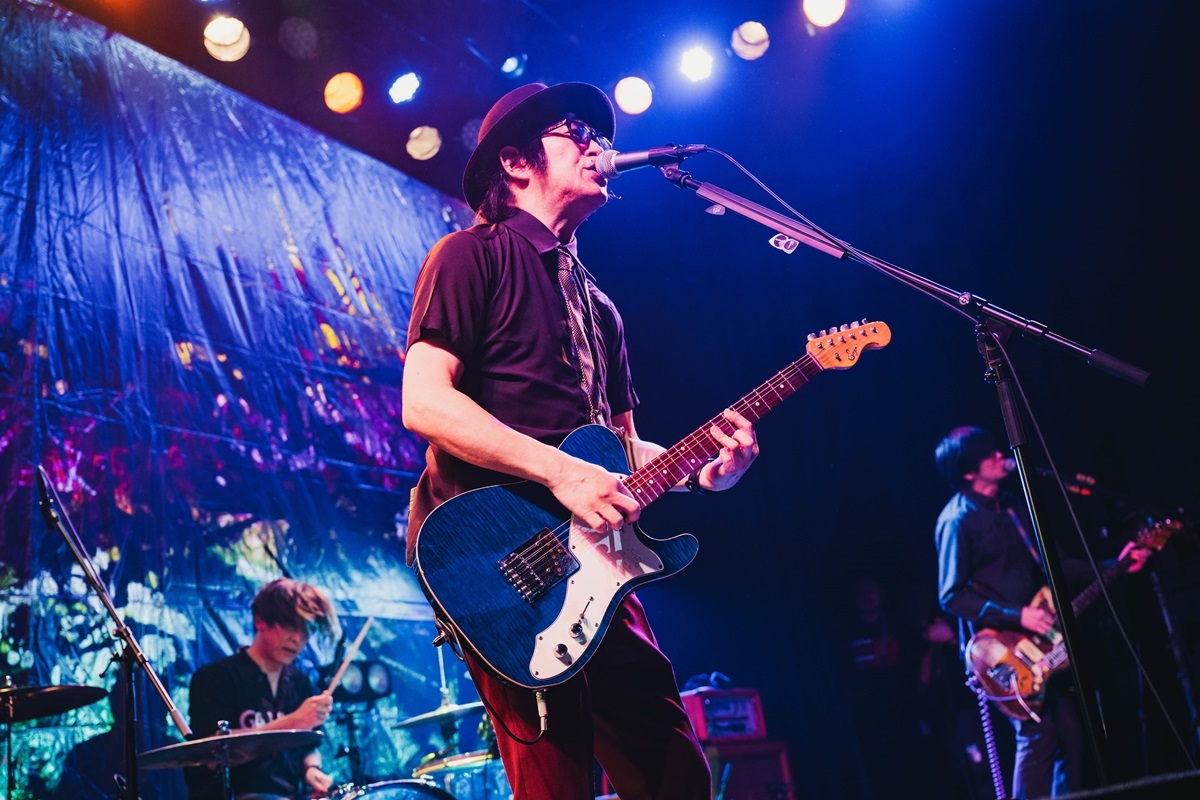 その杉本恭一の還暦を記念した『KYO1KYO60』が、2024年3月20日渋谷PLEASURE PLEASUREで行われた。奇妙な音階が心地よい「時間」のSEと共にさながらタイムトンネルのような映像が流れ(レピッシュ初期の杉本の衣装である赤いスーツを着た御父上の還暦時写真も挿入!)、登場するのは、杉本恭一(Vo&Gt)とthree days agoの奥村大(Gt&Cho)、有江嘉典(Ba&Cho)、中畑大樹(Dr&Cho)。お馴染みのメンバーだ。