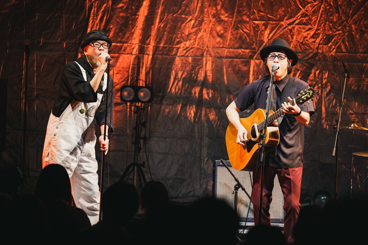 硬軟、動静の引き出しの多さがまた痛快だ。そんな中、11曲目「Panmanブギ」で最初のゲストにして華恭でコンビを組む盟友・水戸華之介が登場し、〇なせ〇かし巨匠からのクレームを心配しつつ笑いながら聴きつつ、軽快なおしゃべりというか漫才?を挟んで「ゆらぎ」「無敵のボヘミアン」と、のべ3曲を披露。