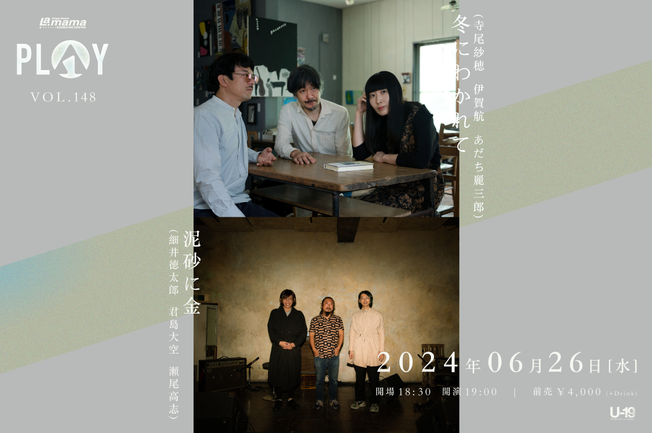 『PLAY』は、渋谷La.mamaが企画するツーマンライブシリーズ。今回は冬にわかれて(寺尾紗穂/伊賀航/あだち麗三郎)と泥砂に金(細井徳太郎/君島大空/瀬尾高志)が出演する。