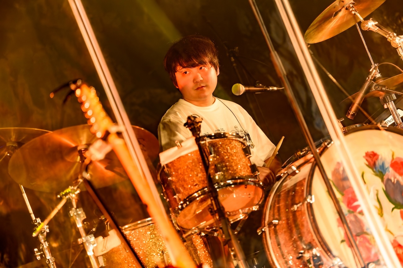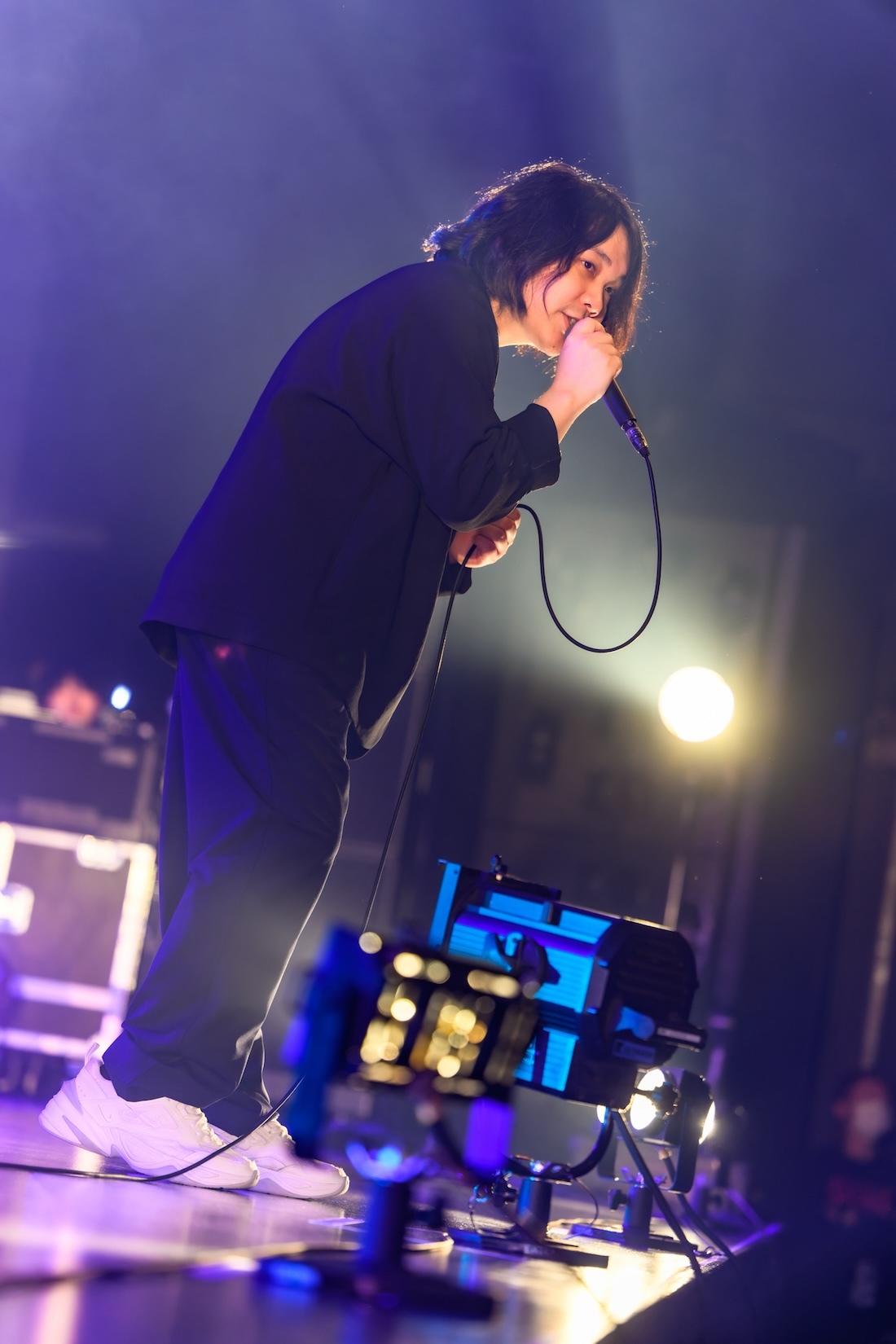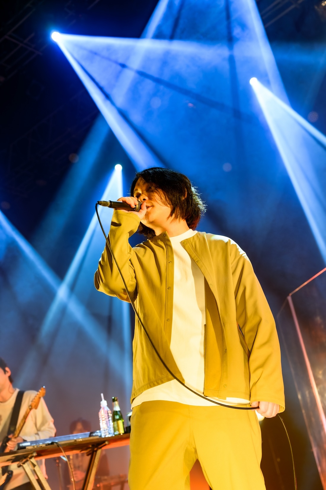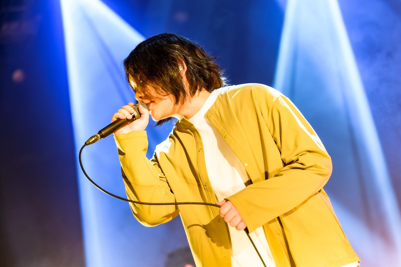 “対決”の狼煙は彼らを古くから知るFM802の番組でも馴染みのDJ大抜卓人のタイトルマッチ風のMCでスタートした。先攻はBBHF。1曲目は強烈な白いバックライトも相まって、荒ぶる魂を叩きつけるBird Bear Hare and Fish名義時代の「ウクライナ」から始まった。<君の好きな曲はやらない 彼らはやらないよ>という一節が、今この目の前のステージでは対決姿勢のように思えてくるから妙だ。一気に最近のナンバーである「やめちゃる」につなぐが、UKロックバンド的なシニカルさがDAIKI(Gt)のエッジとひんやりしたギターサウンドで立体化する。テンポこそ走っていないが、感情は畳み掛けてくる。
