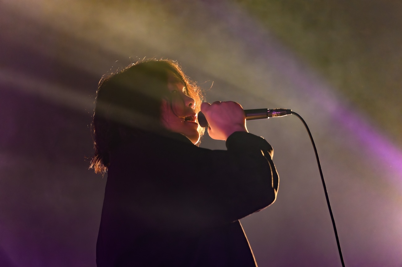 「Galileo Galileiです。優しいGalileo Galileiです」と、冗談めかした第一声。肩肘張らないポップバンドの趣きは大久保のサックスが大活躍する「あそぼ」へ繋がり、ステップを踏む雄貴につられる感じで自由に揺らせる人が続出し、中には高くジャンプしている男性も見受けられた。同じボーカリストなのだが、歌唱のアウトプットの種類が違う印象も受ける。サビの<遊ぼう>のロングトーンに含まれる祝祭の響き。歌うほどに調子を上げているようだ。さらに「バナナフィッシュの浜辺と黒い虹」でエネルギーを素直に放出させる様は先輩バンドがノリのいい曲で対抗してきたような、ワンマンでは感じない面白さを個人的には感じ取ってしまった。しかも、再始動後の大久保のサックスをはじめとした大人なアレンジが新旧のナンバーをお同じ俎上に乗せているのも頼もしい。
