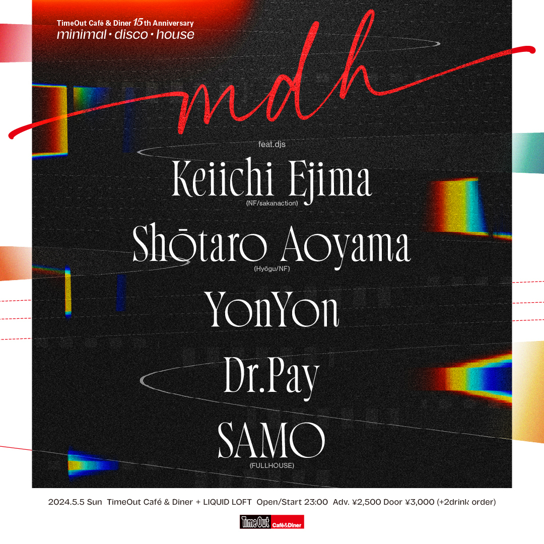 恵比寿LIQUIDROOM 2FのTime Out Cafe15周年を祝い、2024年5月5日(日)に『Time Out Cafe 15th Anniversary minimal disco house』が開催されることが発表された。