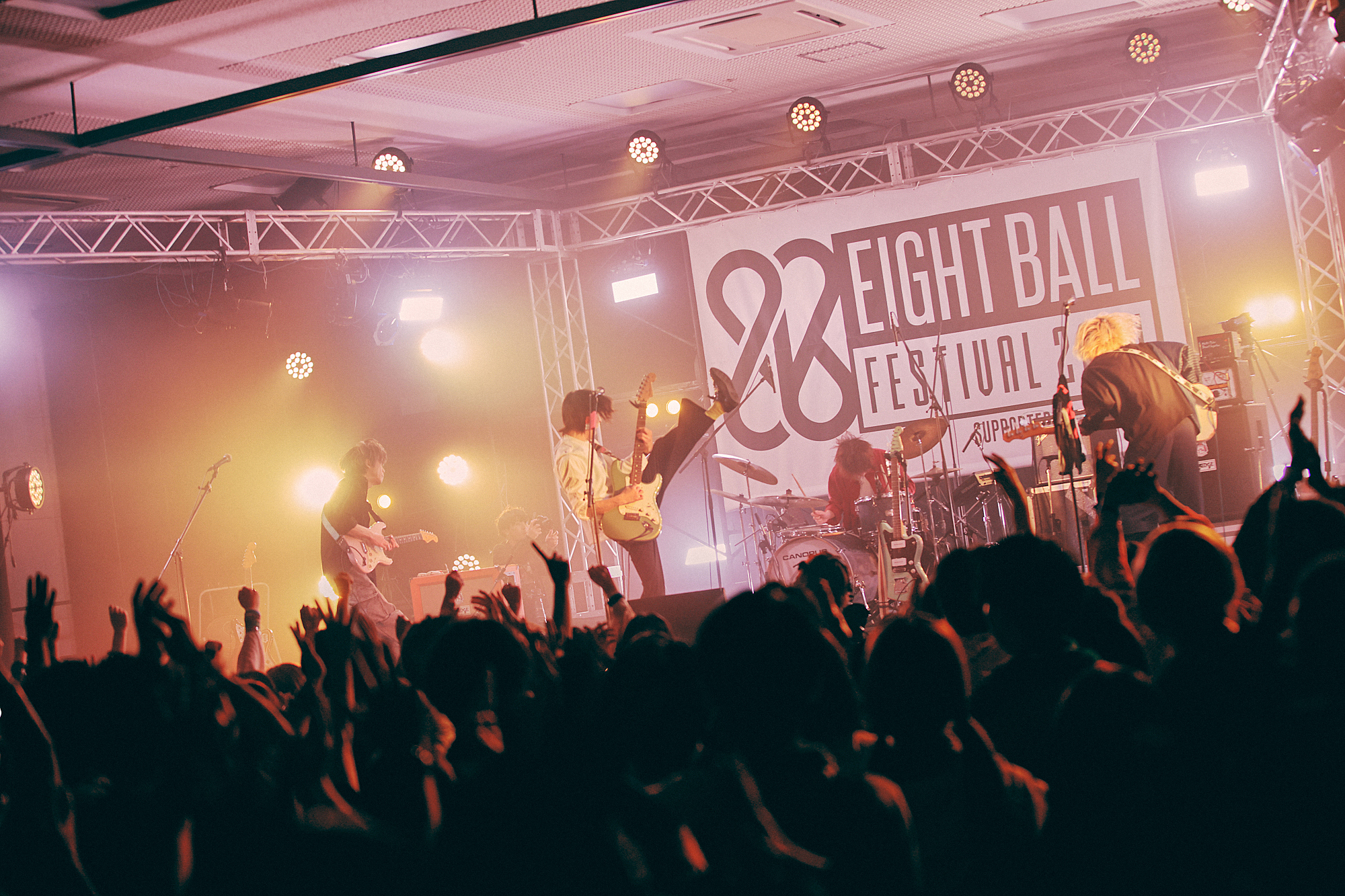 「『EIGHT BALL FESTIVAL』、まずは我々osageを呼んでくださり、そして、これだけたくさんの方がお集りくださり本当にありがとうございます! 今日はたくさん曲を持ってきました。短い時間、全力で歌って届けて帰りますので、どうぞ最後までよろしくお願いします。俺たちがブランニュー・ジャパニーズ・ロックバンド from 東京下北沢。これが新しいロックバンドだ!」(山口、以下同)