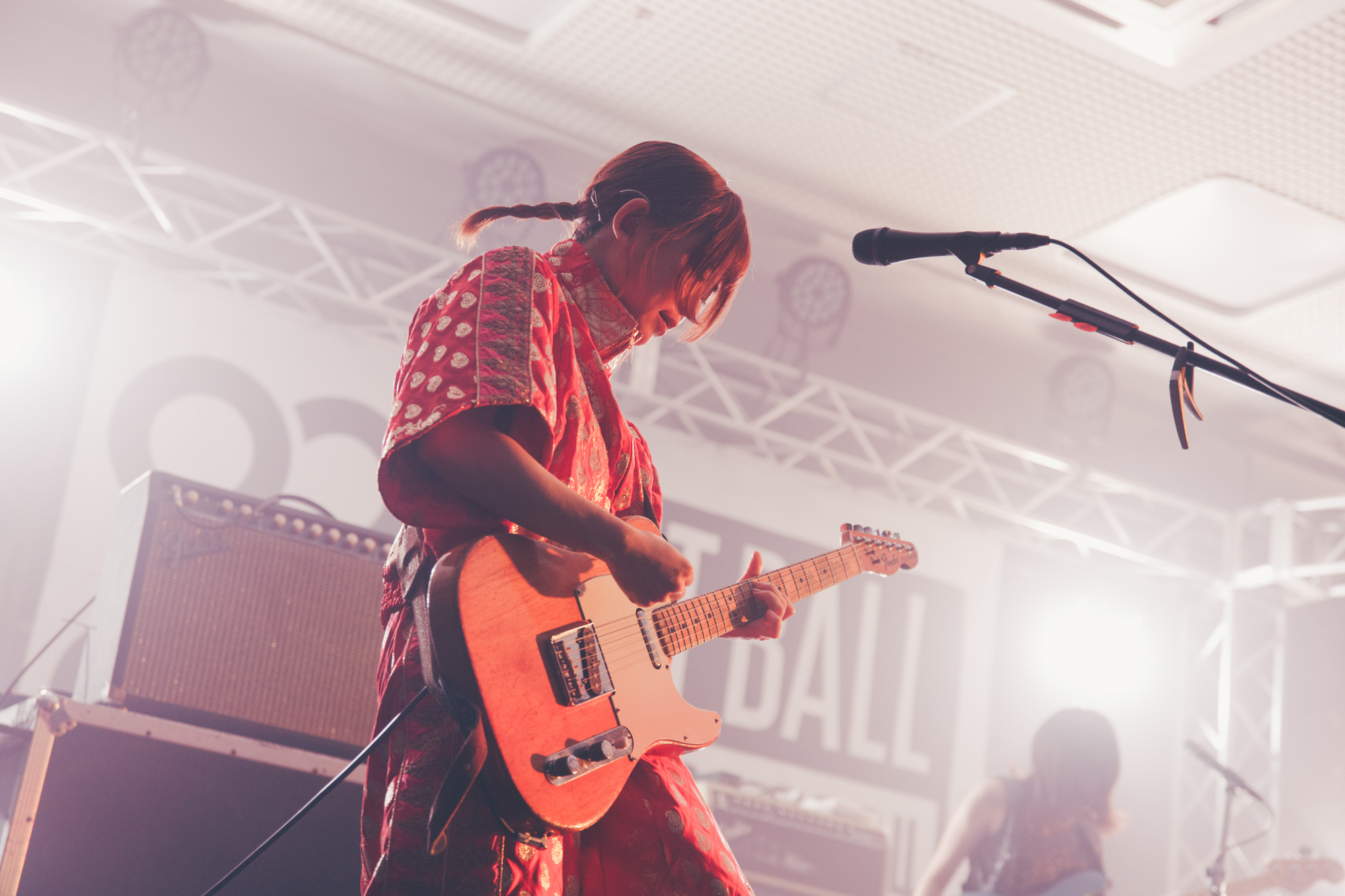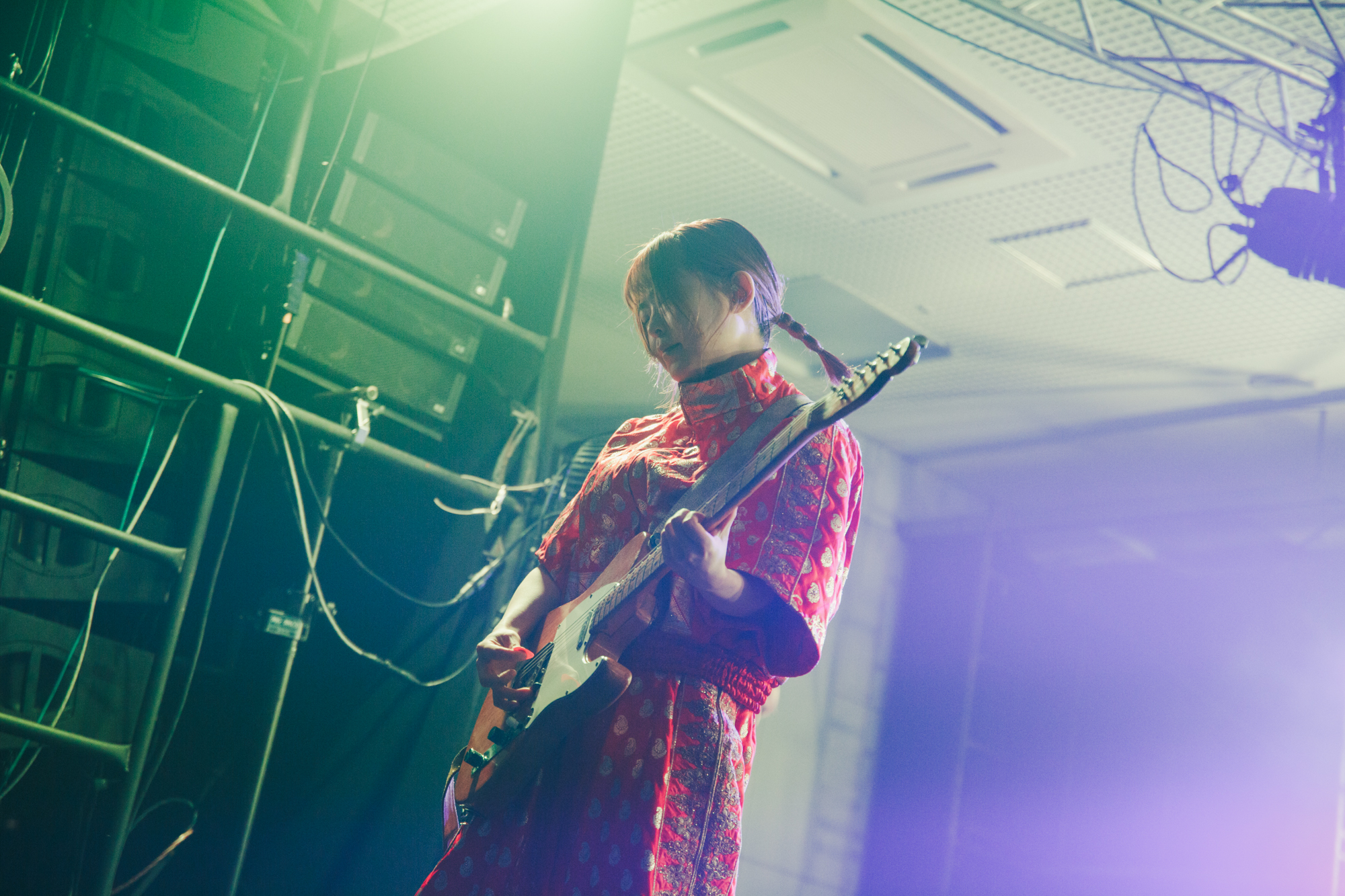 「リーガルリリーです、よろしくお願いします」、シンプルな挨拶を交わし「東京」へ。つらつらと重ねていく言葉、かき鳴らすギター、着実に心音を高めていく海(Ba)のリズム。静と動というか、絶妙な濃淡の違いに目が離せない。たかはしが描く言葉の景色を想うと、その美しさ、刹那さに心震える。無垢な歌声に衝動を込めたその言葉はなんとも愛お