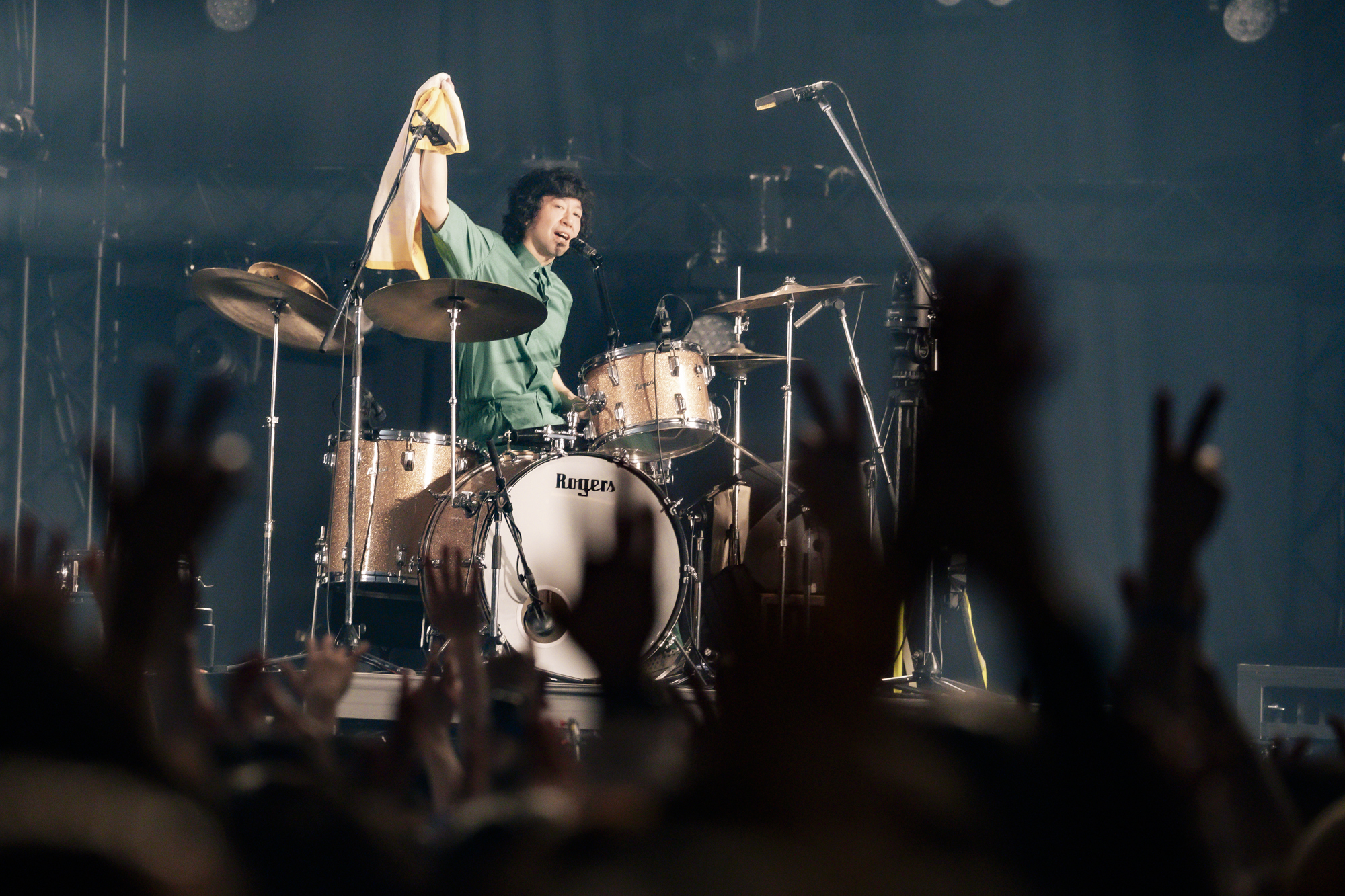 浦清英(Key)の歌うような鍵盤の音色で、曲が持つドラマを何倍、何十倍にも増幅させていき、さらに「ガッツだぜ!!」で会場のテンションは天井突破! サンコンJr.(Dr)の放つ渾身のドラミングで、コンベックス岡山をダンスフロアへと塗り替えていく。そんなめくるめくファンクショーの極め付けには、歌い始めから大歓声が沸いた「バンザイ~好きでよかった~」! 歌心ある歌唱と色鮮やかなアンサンブルが、みずみずしく心に染みわたっていく。「イイ感じに温まったかな? また来ます。また呼んでください!」と再会を約束してくれた彼ら。この上ないパフォーマンスで身も心も解きほぐしてくれたウルフルズに拍手!