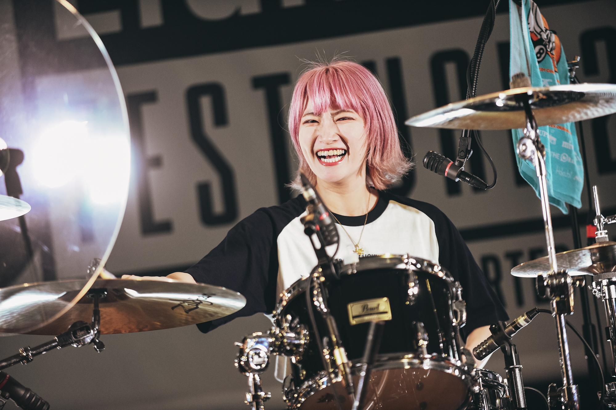 次曲はメジャーデビュー1stフルアルバムのタイトル曲「覚悟を決めろ!」。リリックのストレートで拳のこもった力強い感情、るみなす(Gt.Cho)の渋みを効かせたギターサウンド、GK(Dr.Cho)のカラっと軽快なビートに誰もが満面の笑みを浮かべて聴き入っている。
