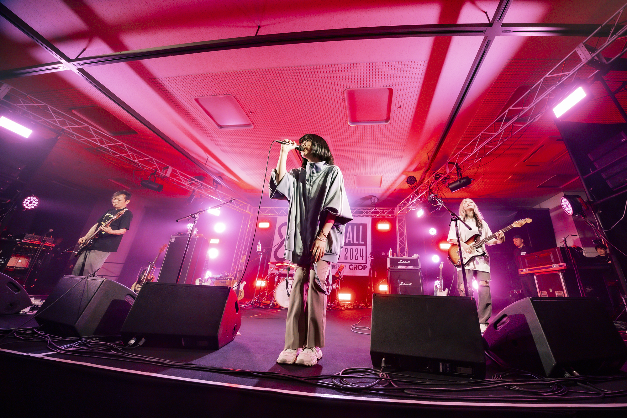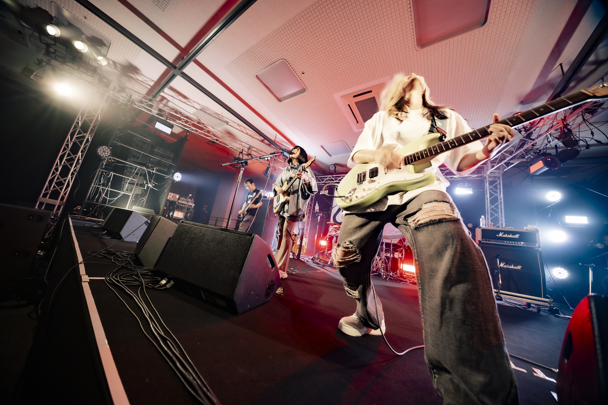 サウンドチェックから初出演とは思えないリラックスした面持ちで、STRIPED STAGEを盛り上げていたのは、なきごとだ。「えーめっちゃいい」と水上えみり(Vo.Gt)が漏らすほど、準備万端×気合十分でスタンバイ。