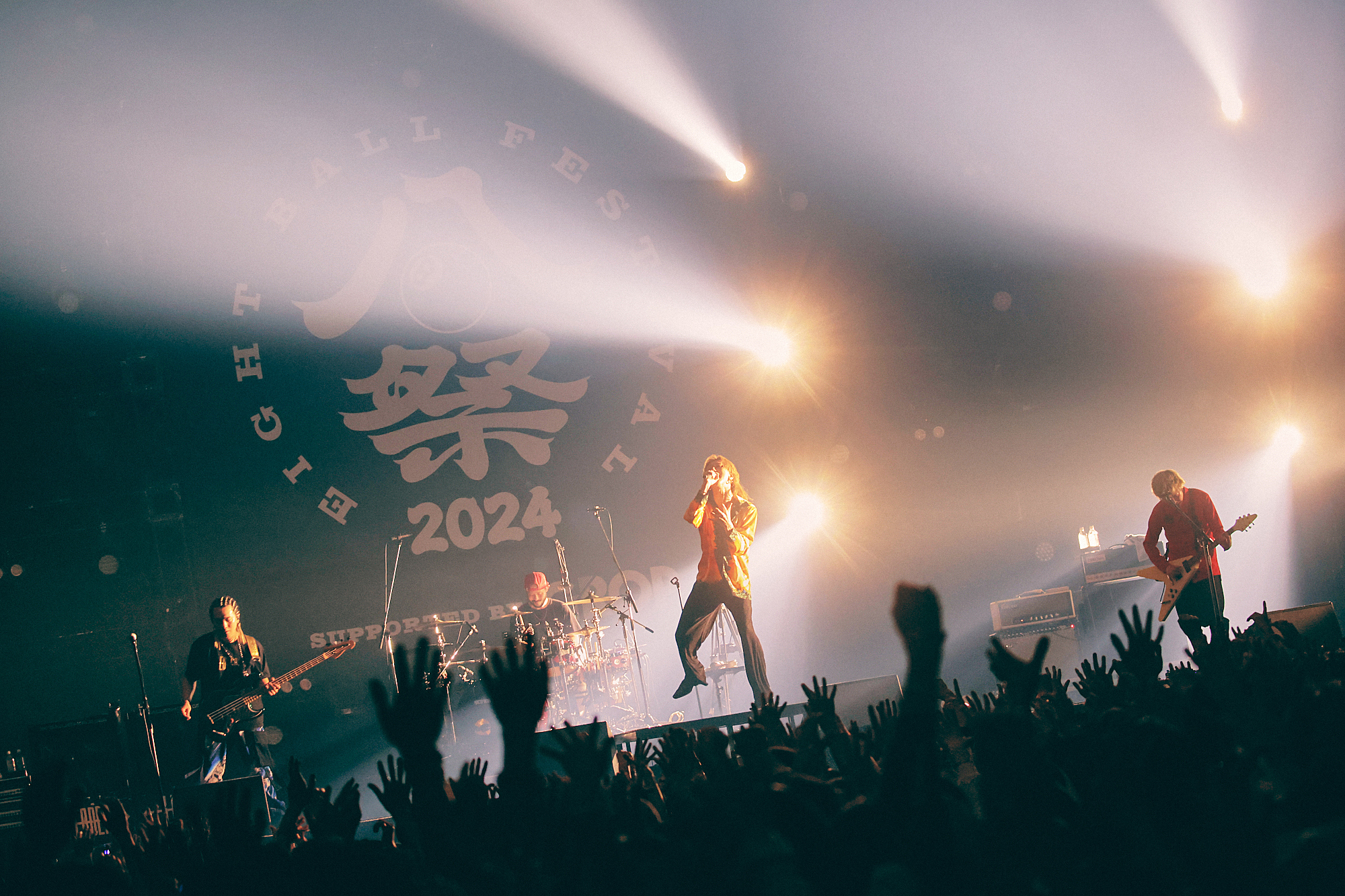サウンドチェックのためにメンバーがステージに現れるだけでもう大歓声。その声に「まだ元気は残ってますか?」とラフに呼び掛けた柳沢亮太(Gt)が促せば、オーディエンスのジャンプでSOLID STAGEが揺れる仕上がりぶり。本番までのあと3分すら待ち切れないという爆発寸前のムードをぶち破った、渋谷龍太(Vo)の「『EIGHT BALL FESTIVAL』、開催おめでとうございます。祭ですから派手にやろうぜ! 愛してる~」の一声で、一曲目を察した観客は一斉に狂喜乱舞!