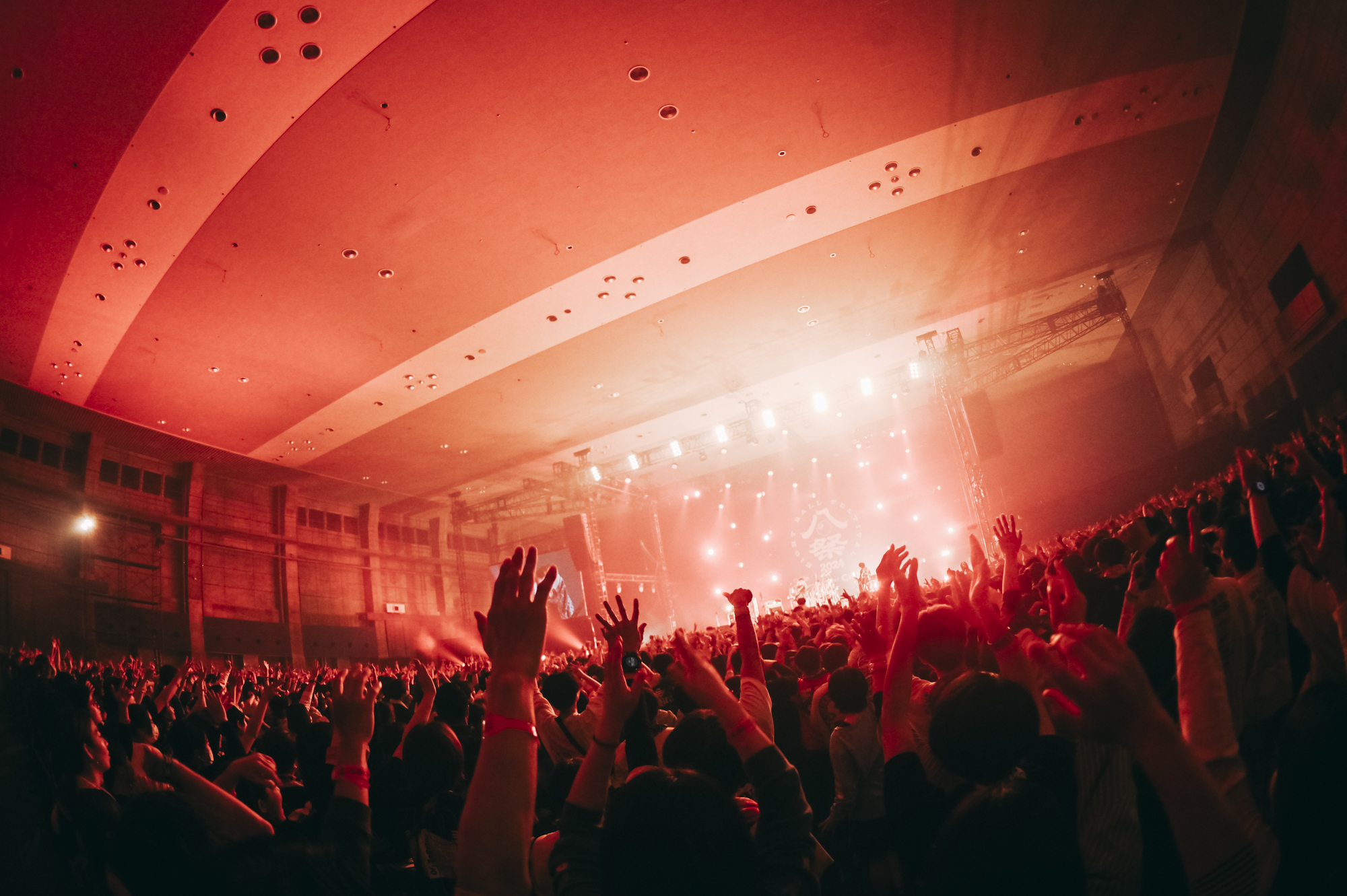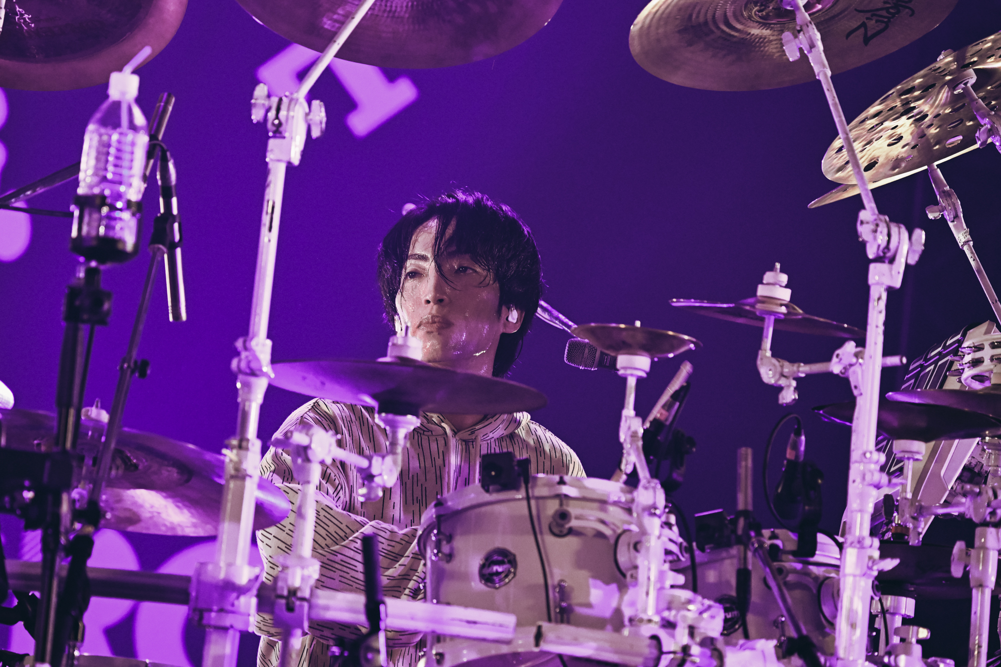 「さあ岡山の皆さん、どれだけ遊べるかチェックさせていただきましょう。好きに遊べや!」と、続く「Red Criminal」でも、まだまだサディスティックな姿勢を崩さない山中。中西雅哉(Dr)が繰り出すダイナミズムにも圧倒されていると、「この美しい景色を撮らせてもらうわ!」と、山中がステージ上から見える最上の空間をカメラマンにおさえてもらう一幕も。メンバーにとってもこの日が特別なのだと、さらに体感温度は上昇する。イントロから歓声が上がった「BUG」がまたすさまじく、一斉に両腕を振る人々で埋め尽くされ、SOLID STAGEは巨大なダンスフロアへと化す。