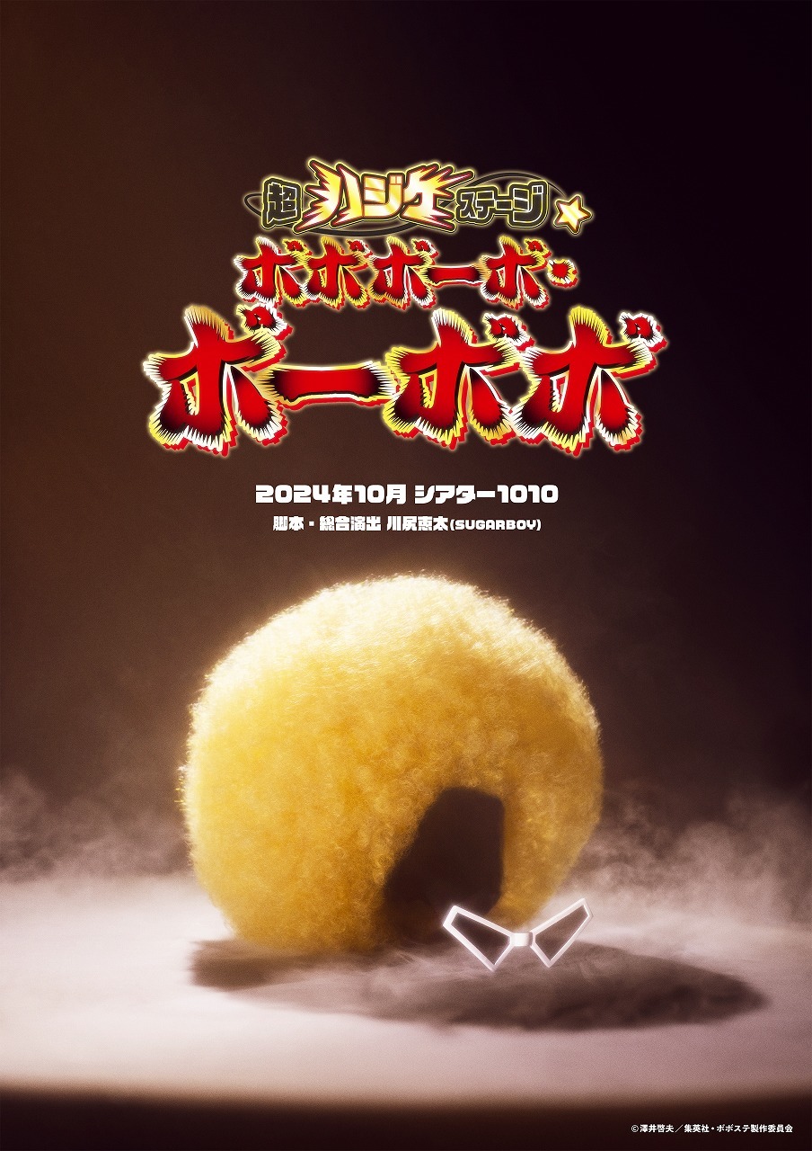 脚本・総合演出には、舞台『モブサイコ100』シリーズ(脚本・演出)、体内活劇『はたらく細胞』シリーズ(脚本・演出)などの川尻恵太(SUGARBOY)。公演タイトルを『超ハジケステージ☆ボボボーボ・ボーボボ』とし、東京・シアター1010にて2024年10月上演する。出演者などの発表は続報を楽しみにしよう。