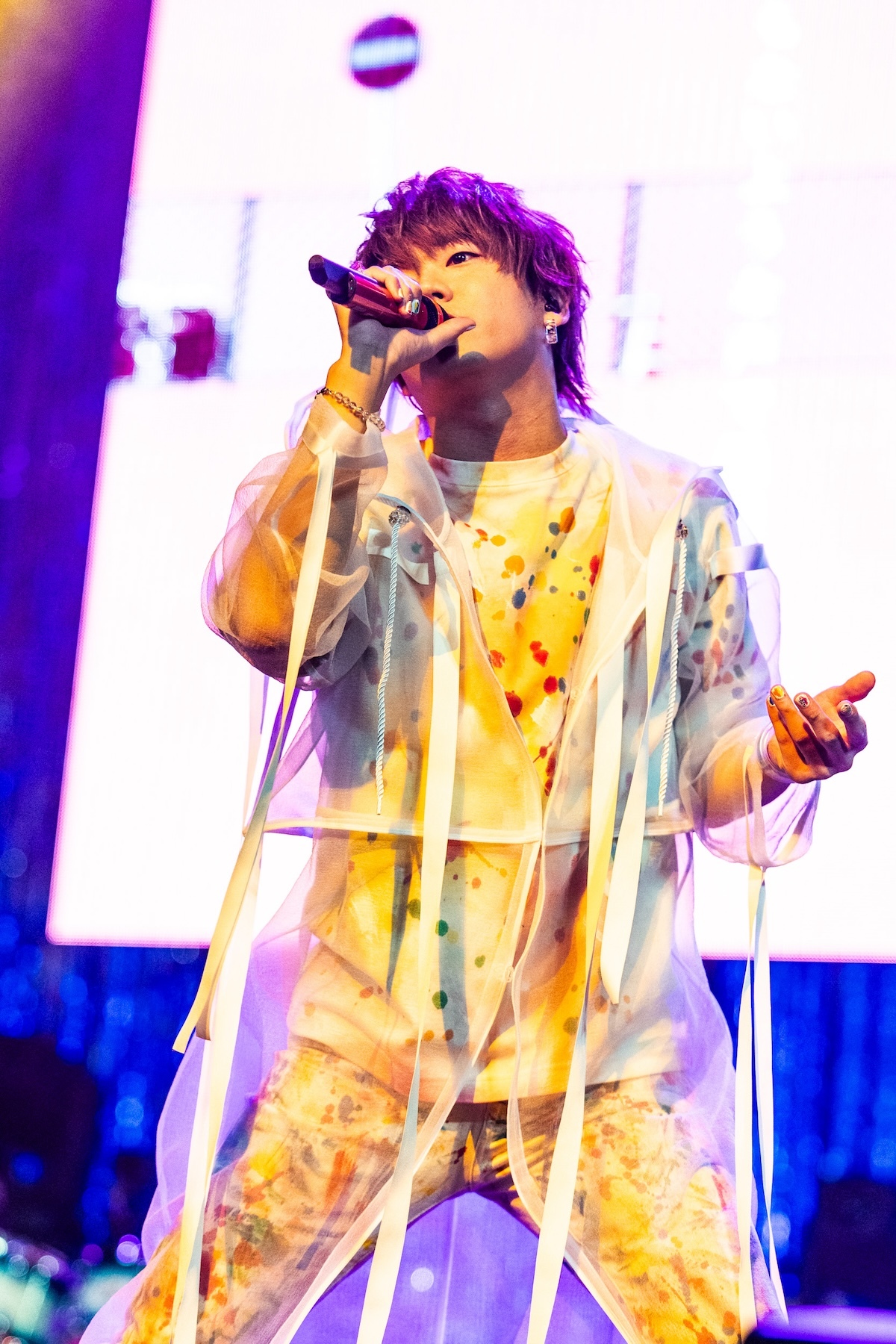 さて、ここからはいよいよ後半戦へ。「終盤戦、いけますか! 大きな声を聞かせて!」と煽り、「エンジョイ」へ。ゆずの北川悠仁が楽曲提供した超ポップチューンだ。元気がもらえる応援歌に会場中は大ノリ! 続いて洗練されたサウンドで聴かせる「シニカルブルーは眠らない」、そして、自作曲であり、自身の思い入れが強いラスト曲「ラナ」まで、フルスロットルの歌声を響かせた。