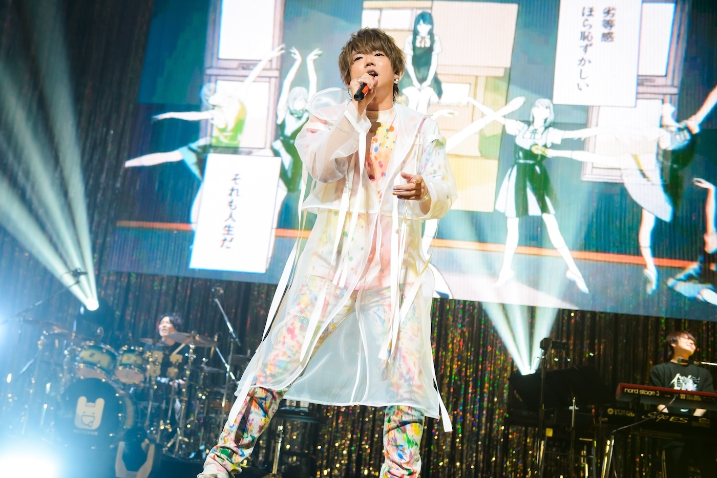 後半戦に入る前には映像をはさんでリラックスタイムを演出。そこから再び本流のライブが再開。このブロックでは、彼の表現力が際立つ選曲となった。自身の作詞作曲による「ヴィクター」や、クールなアレンジで聴かせた椎名林檎の「本能」、川谷絵音(ゲスの極み乙女、indigo la Endなど)が曲提供した名曲「ズルい幻」など、個性的な楽曲達を見事に歌い切る。