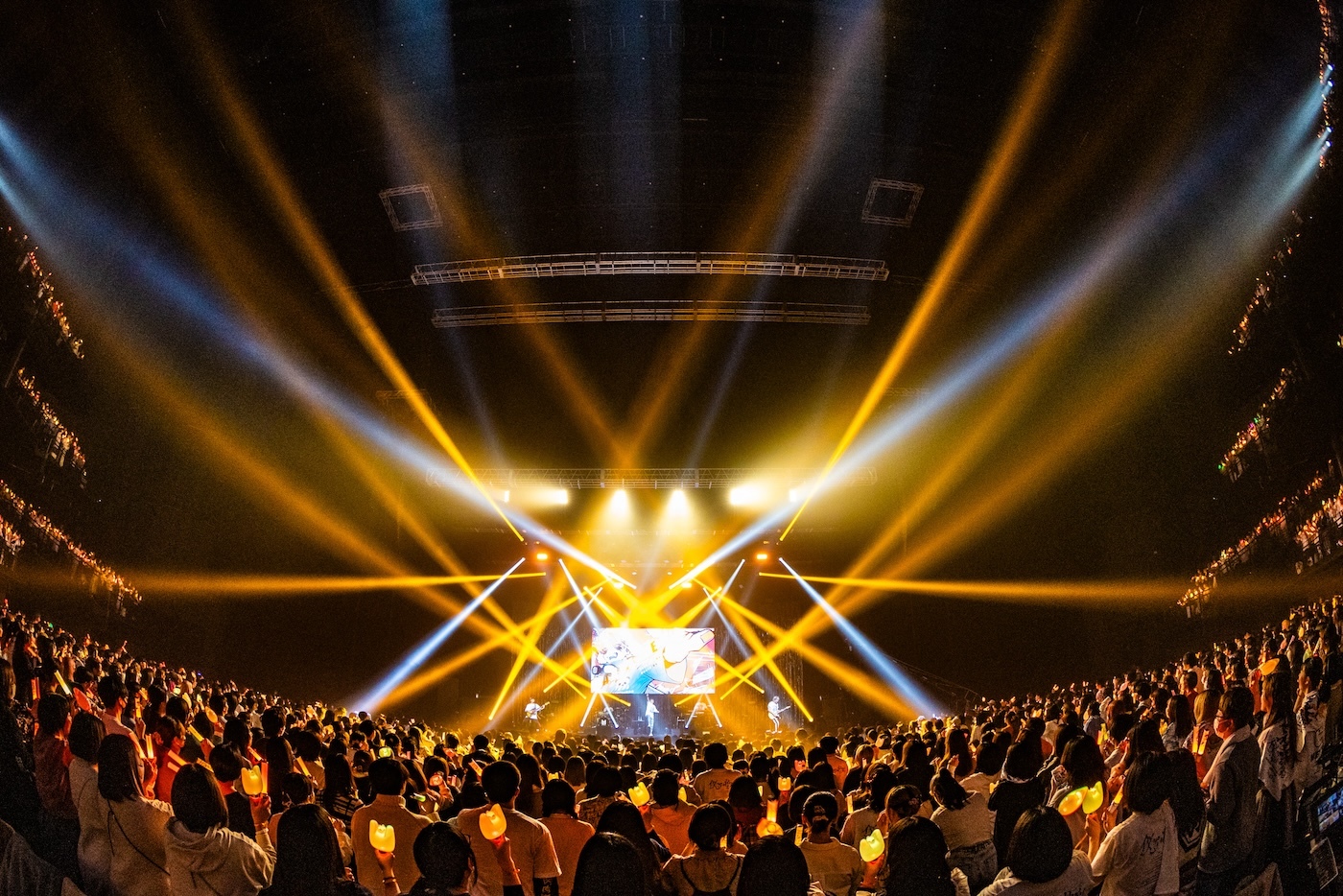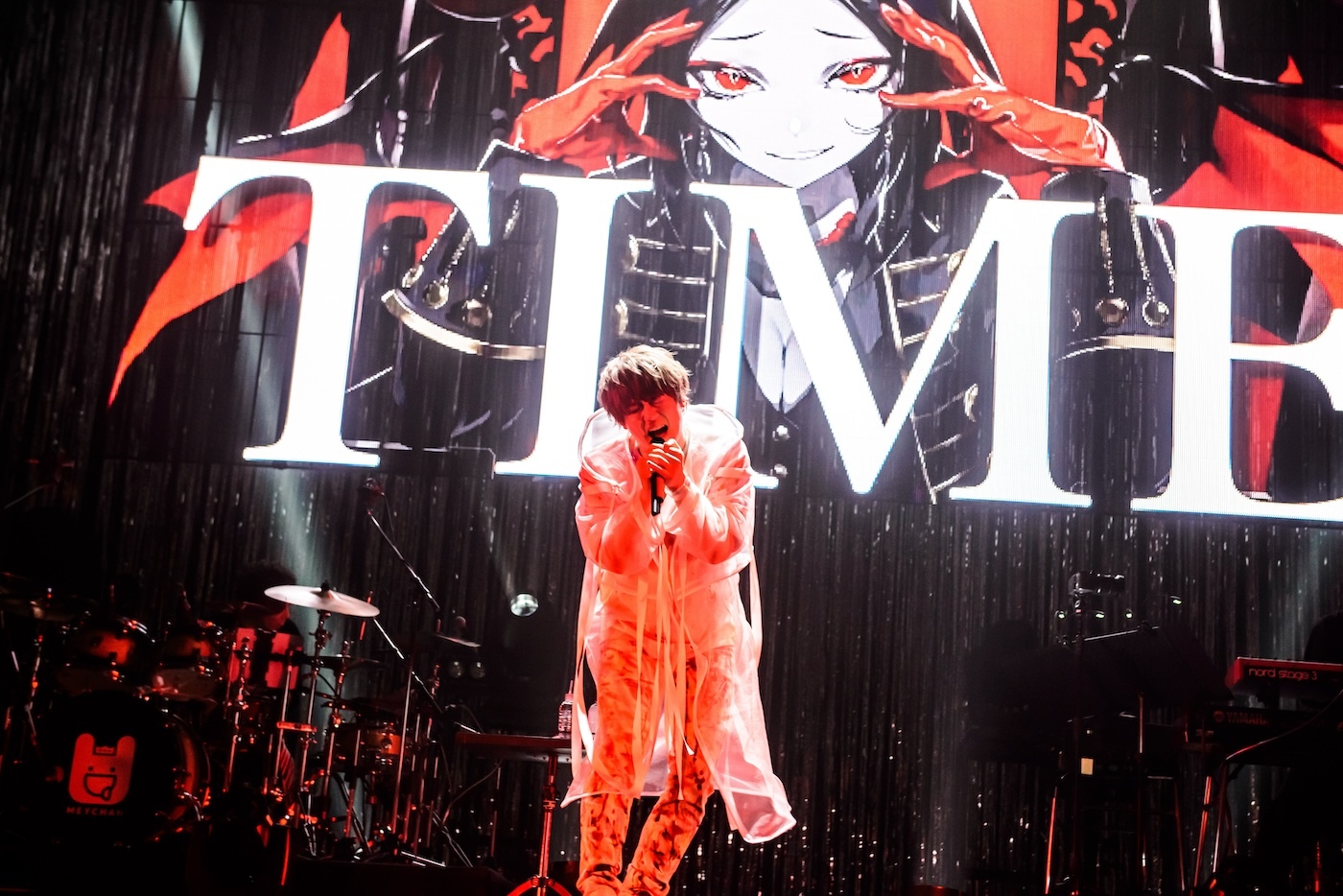 17時の開演時間と同時に会場の照明が暗転。満員の観客が手にするペンライトが一気に瞬き、めいちゃんワールドを演出。ポップなSEが流れる中、スクリーンにはツアーのキービジュアルが映し出され、場内からは拍手が起こる。直後にバンドが1曲目「パンダヒーロー」を演奏し始めると、めいちゃんが「帰ってきたぞ、東京!」と叫び、キービジュアルのイラストと同じ白を基調とした衣装で華麗に登場。彼のイメージカラーであるオレンジのペンライトも一斉に揺れ始めた。その後も「ジャンキーナイトタウンオーケストラ」「バレリーコ」と、アッパーな人気ナンバーを披露。多くのツアースケジュールをこなしてきたバンドとの息もピッタリで、めいちゃんの歌唱もいつも以上にパワフルだ。曲中でも、彼は「盛り上がっていこうぜ!」「いけるか、東京!」と、観客を煽りまくる。最初のMCタイムでは「今日は今まで培ったものを全部だします!」と力強く発言。そして、「もっとひとつになりませんか!」と、呼びかけて次のブロックへ。