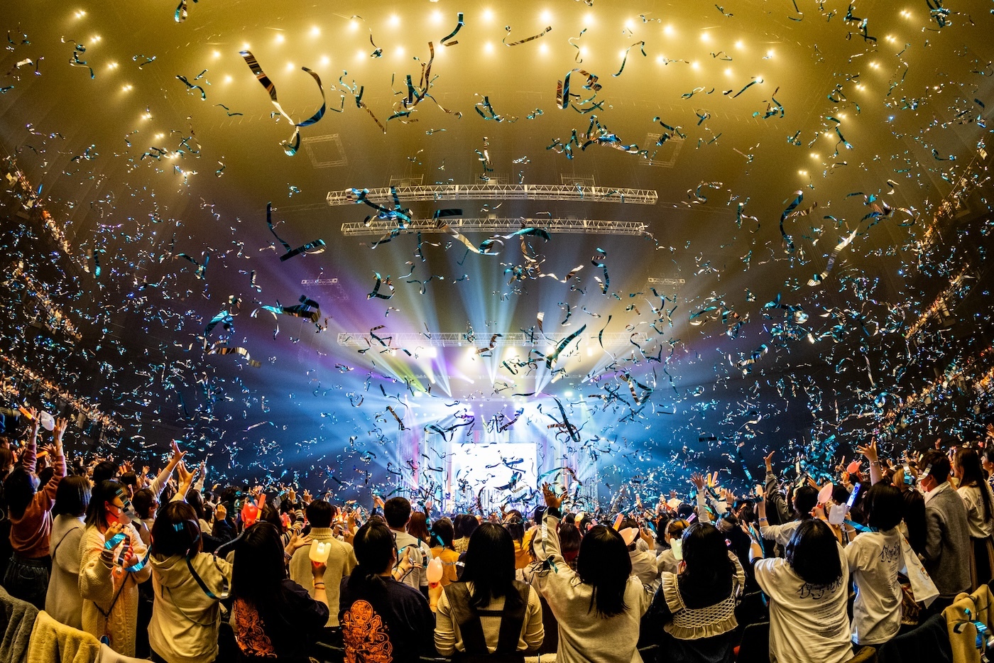 「本当に幸せなライブツアーだったと思います」と報告。そして、掲げていたテーマが“将来の不安より今の幸せにフォーカスしていこう”ということにも触れ、大きな決断をしたとも告白。「3月26日の20時にX(旧ツイッター)で伝えようと思います。それがどんな内容であってもこの場所に戻ってくると約束します」と、意味深な言葉をファンに伝えた。場内には不安げな騒めきが起こったが、めいちゃんは「本当に幸せなツアーでした。終わっちゃうの、やだよな!」と空気を変え、「また最初からやっちゃおうか!」と、本編1曲目の「パンダ―ヒーロー」をプレイ。実はこれ、予定外の選曲なのだ。しかも、そのまま本編2曲目、3曲目の再演奏が続き、本当にこのままもう1ステージやってしまうのでは?と思わせるほどの熱量でライブを盛り上げた。もちろん、観客のノリも増し増し! しかし、ついに最後の曲まで辿り着く。元気なめいちゃんらしく、最後は超人気のハイパーポップチューン「小悪魔だってかまわない!」が飛び出す。銀テープの発射によるエンディングの演出で、12都市・計18公演のツアーはフィニッシュとなった。終演後は映画のエンドロールのようなスタッフクレジットと、各地を楽しむめいちゃんのオフショットムービーが流れる。映像が終わると、場内からは温かい拍手が起こった。