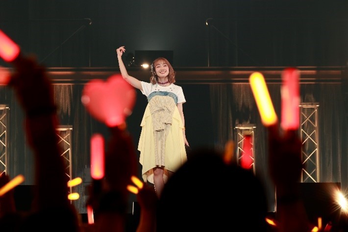 続いては岬なこが登場し、デビューアルバム『day to YOU』から「Dancing! Singing! Feeling!」をトロッコに乗って一周しながら披露した。「初めましての方も多いかと思いますので~」と自己紹介ではのほほんとした一面も見せ、「スイートサイン」ではその甘い歌声を響かせた。