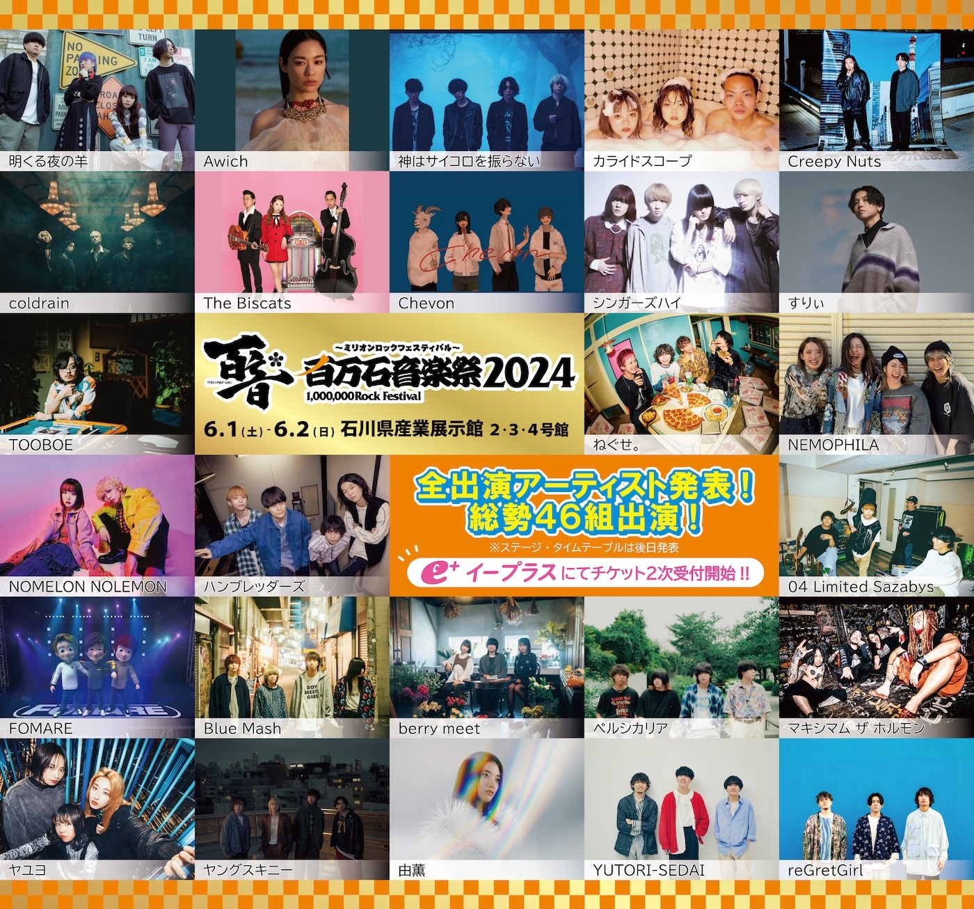 2024年6月1日(土)・2日(日)に石川県産業展示館 2・3・4号館にて開催される『百万石音楽祭2024 ~ミリオンロックフェスティバル~』の追加出演アーティストが発表された。