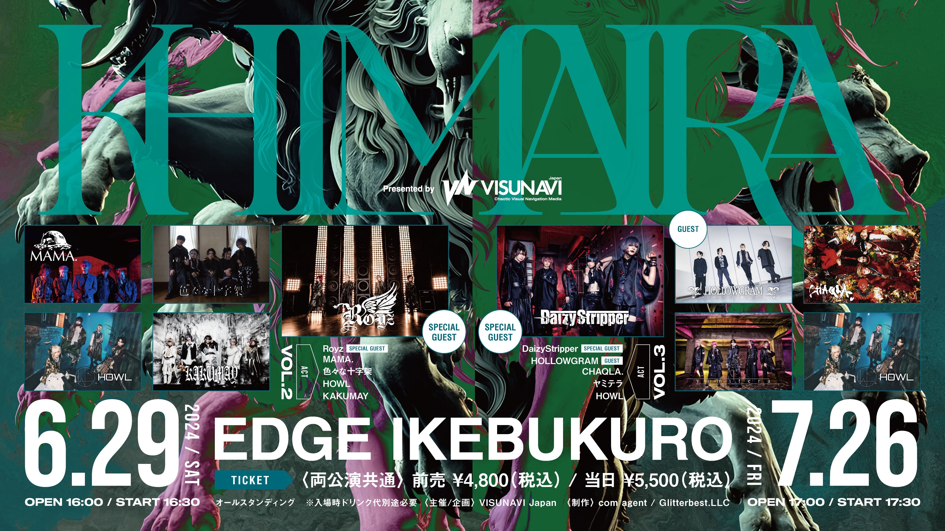 6月29日(土)開催の『KHIMAIRA vol.2』にはRoyzがスペシャルゲストとして出演し、MAMA.、色々な十字架、HOWL、KAKUMAYの4組がラインナップ。