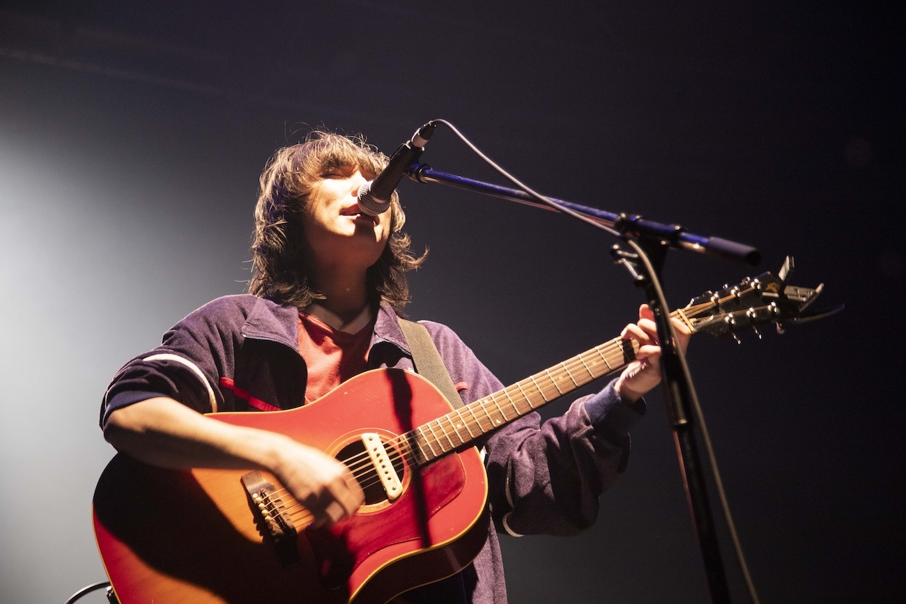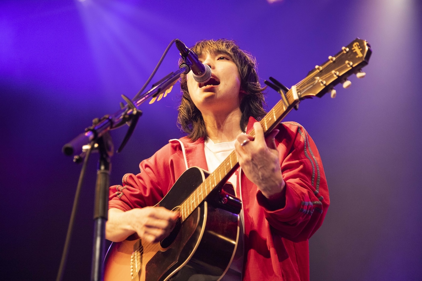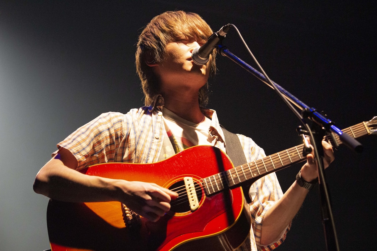 その中では、最新EP『ハロー・グッドバイ』から杉浦・疋田・杉崎が自身の作詞作曲する楽曲を弾き語りで披露するコーナーも。弾き語りトップバッターは杉浦。杉浦が「東京駅」を歌い出すと、緩やかなトークの雰囲気から場が一変する。流石ボーカリストというだけあって、柔らかくも力強い歌声が大きな会場に響き渡った。続いて、杉崎は「ハル」を歌うことに。『人前で歌うのは、前回の「喫茶店の日」以来の二回目です』と緊張もしていたが、想いを込めて一途に歌う。最後は疋田によって「さよならより遠いどこかへ」が歌われる。音源よりミドルバラッドの要素が濃く抽出されたアレンジは、まさにここでしか聴けないレア感があった。