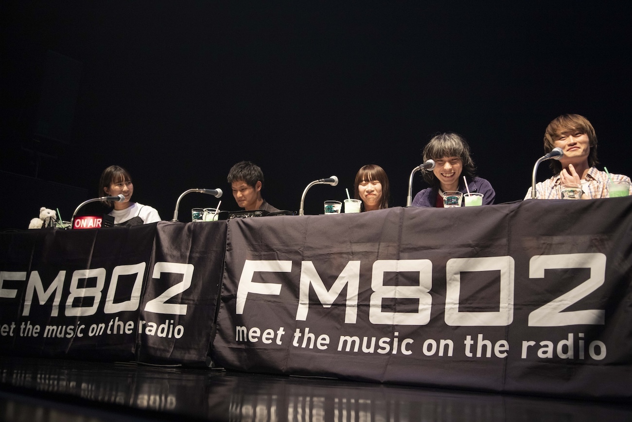 今回は二部構成になっており、第一部は、『喫茶店の日2024』に向けてFM802『EVENING TAP』でコラボグラスを作るなど期間限定コーナーを行なっていた事から、番組DJである田中乃絵が司会進行を務め、メンバーの杉浦祐輝(Gt.Vo)・疋田耀(Ba)・杉崎拓斗(Dr)・アクリとトークを行なった。
