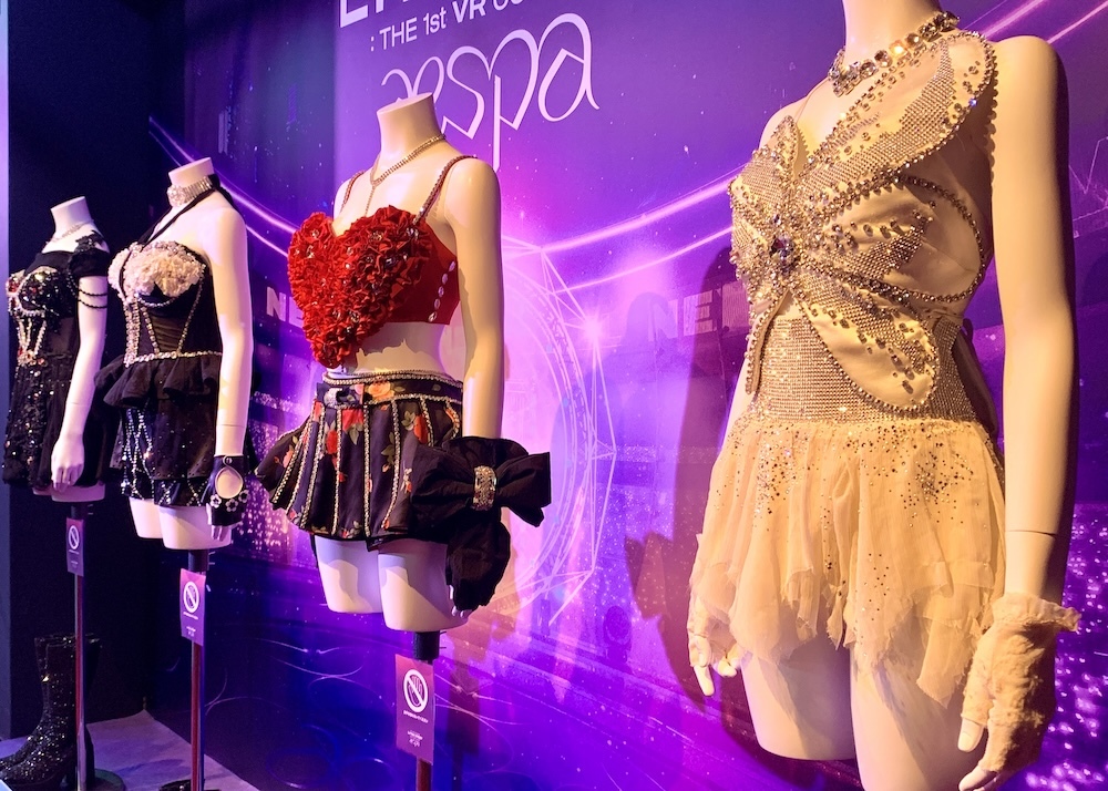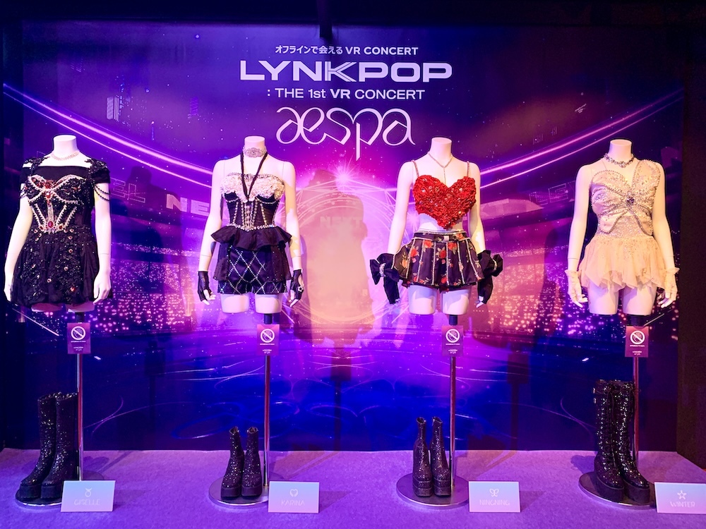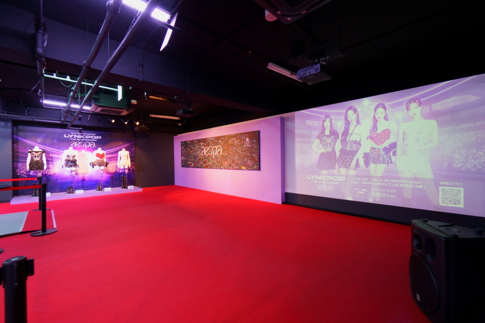 RED°TOKYO TOWER内の別フロアでは、無料で入れるaespa特設コーナーが用意されていた。大阪会場でも同様の展示を予定しているとのこと。実物のステージ衣装や写真、MVなどが展示されていて見応えたっぷりなので、ぜひ併せて楽しみたい。